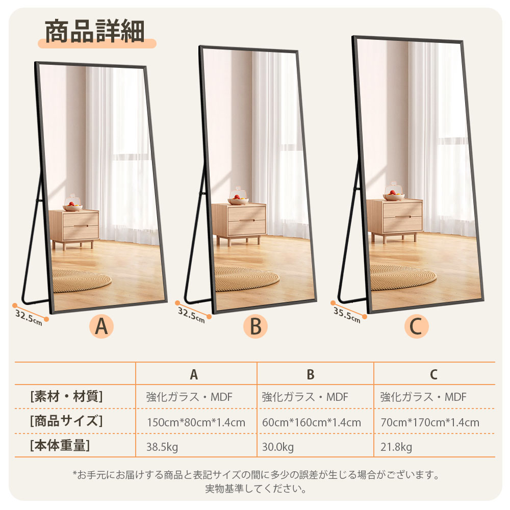 ミラー スタンドミラー 全身鏡 姿見 150*80CM 160*60CM 170*70CM