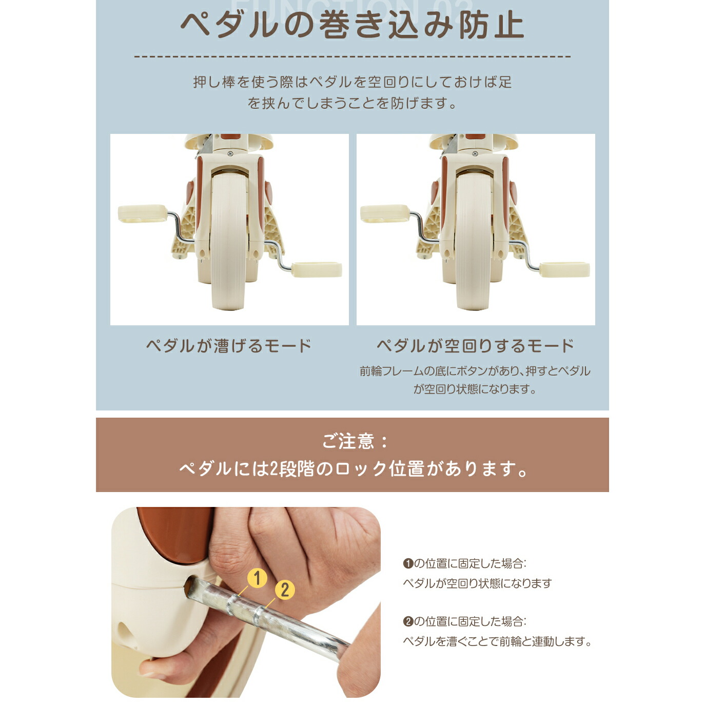 子供用三輪車 かじとり 手押し棒 おし おもちゃ 乗用玩具 三輪車 三輪車 通販 ベージュ・ブラウン ブルー
