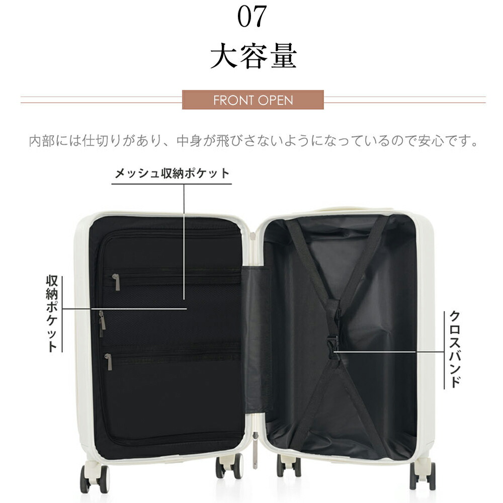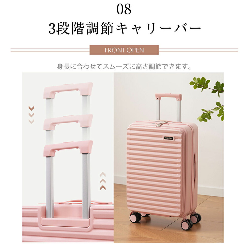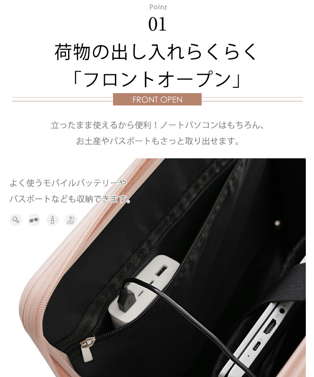 スーツケース フロントオープン 機内持 バッグ スーツケース キャリーバッグ 特集 S サイズ MS サイズ ホワイト ピンク グレー ブラック