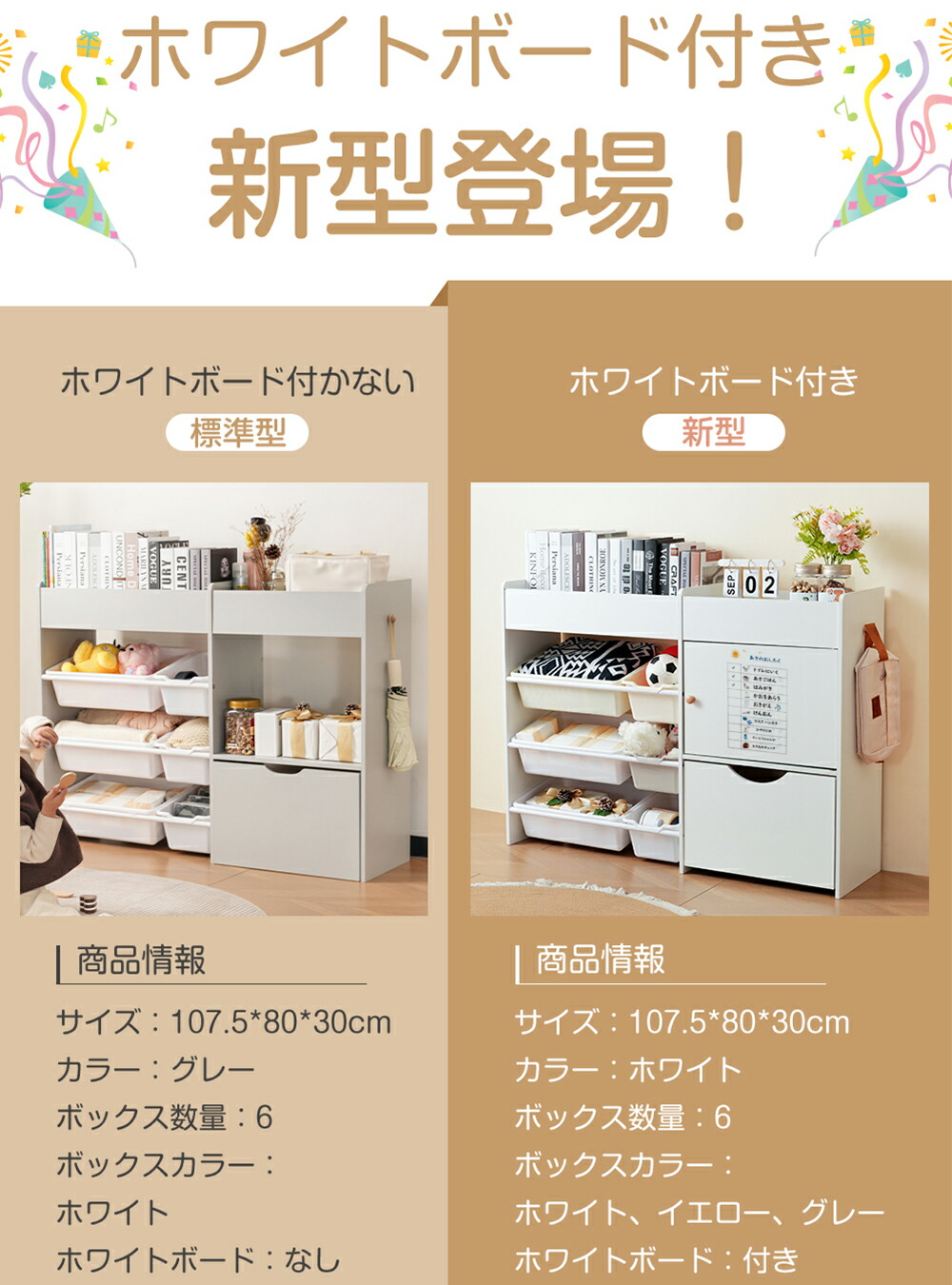 おもちゃ収納 ラック コンパクト おも 【標準型】ホワイトボードなし 【新型】ホワイトボード付き グレー ホワイト