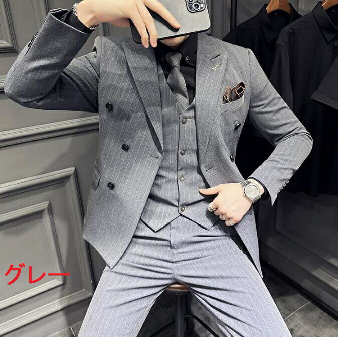全4色スリーピーススーツ 3ピース 通 メンズファッション 人気 黒色 コーヒー グレー ブルー S M L XL 2XL 3XL 4XL 5XL 6XL 7XL