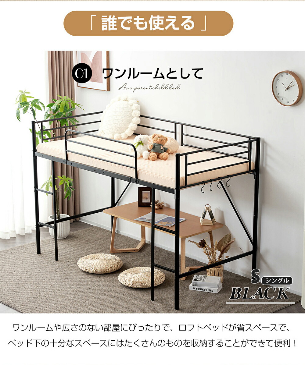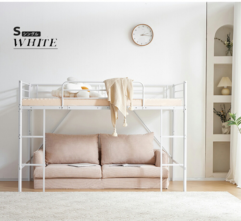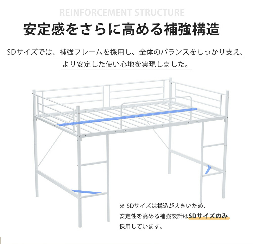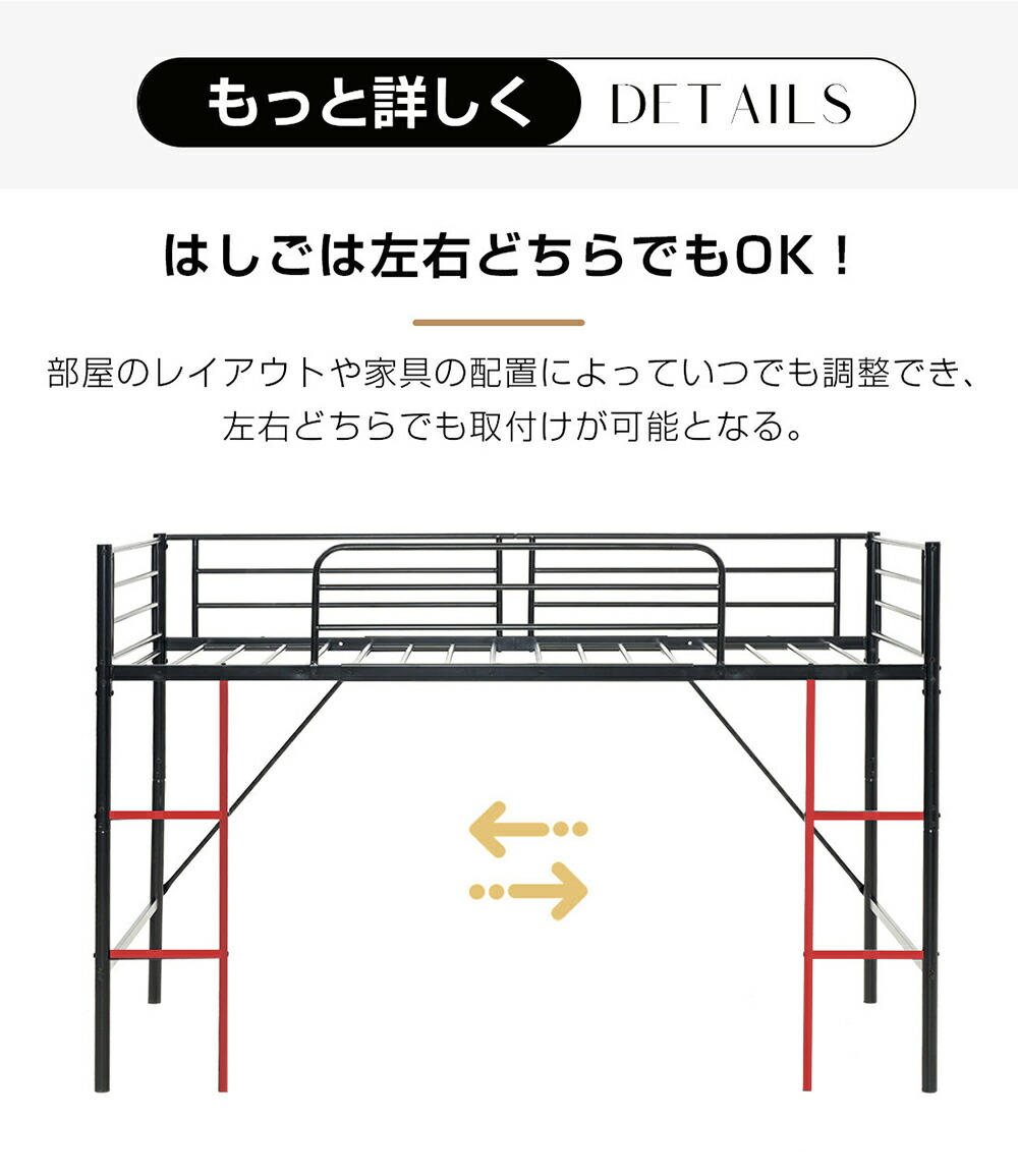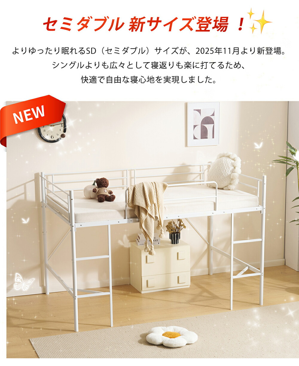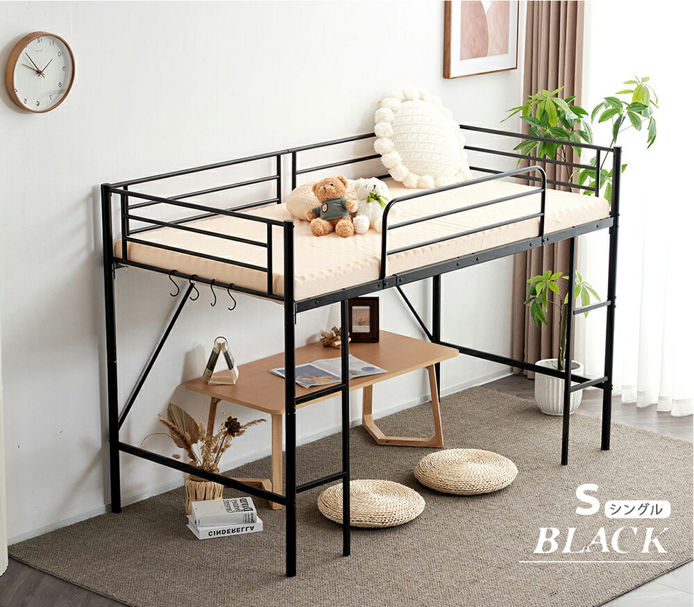 ロフトベッド パイプベッド ロータイプ シングル セミダブル ブラック ホワイト