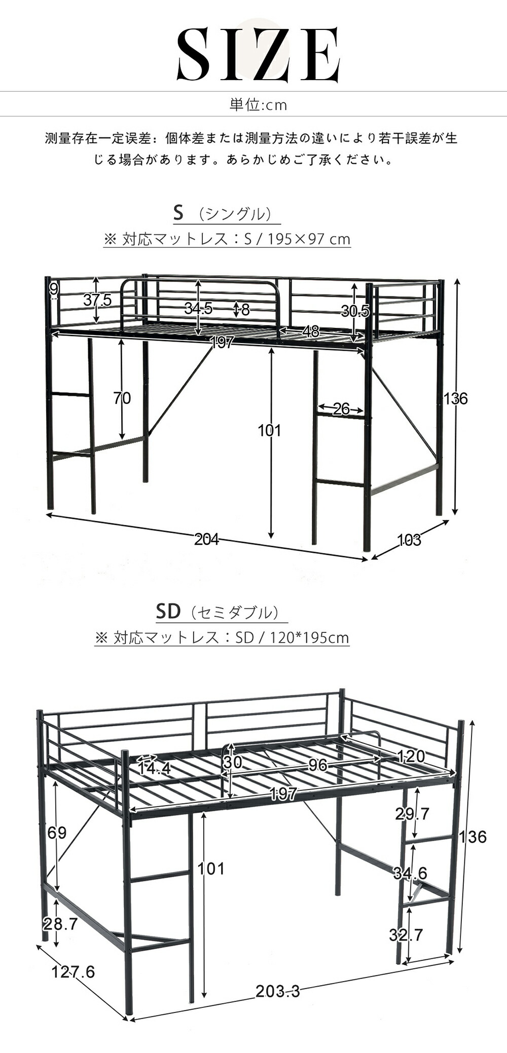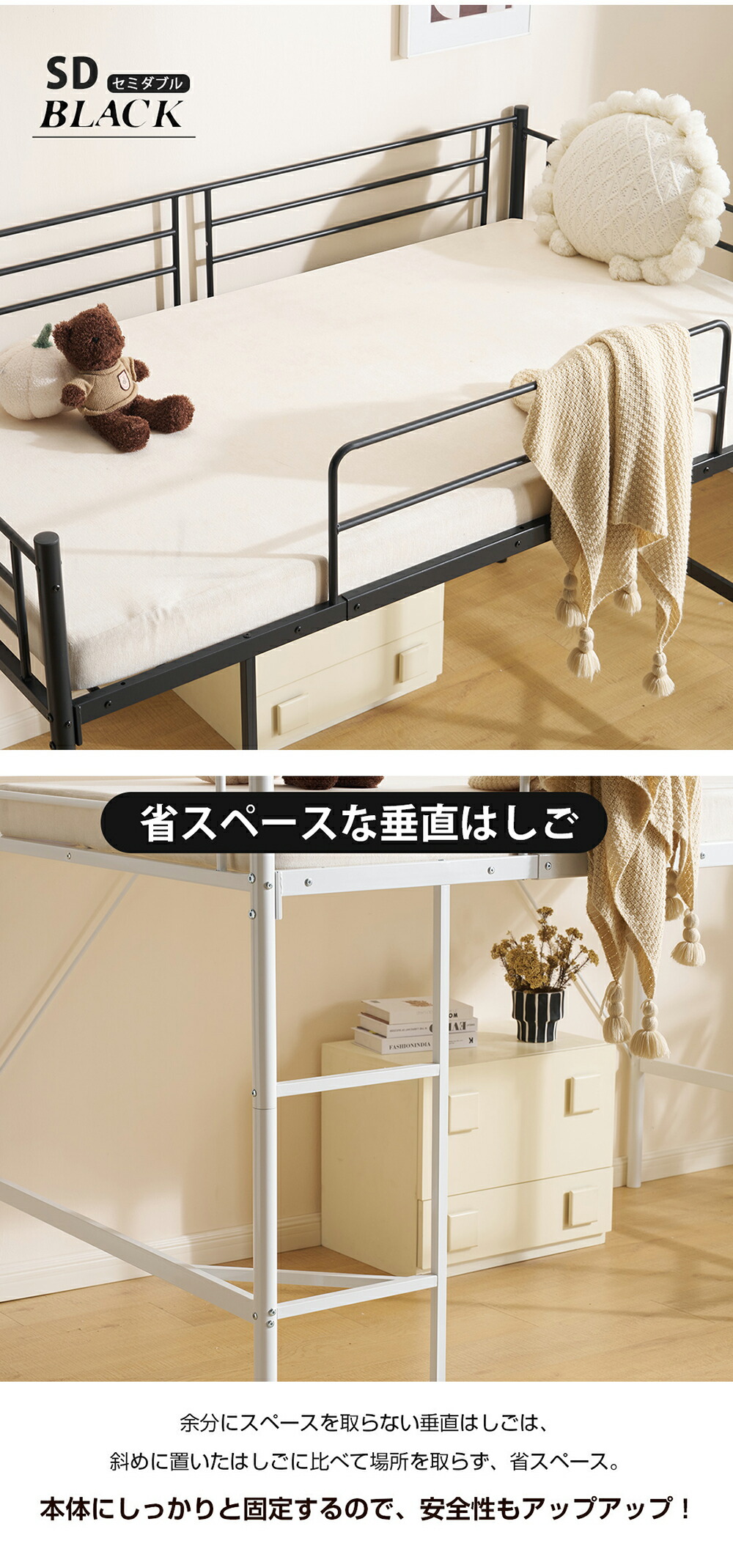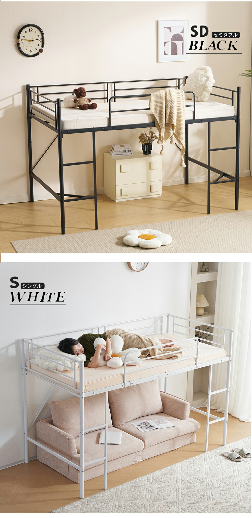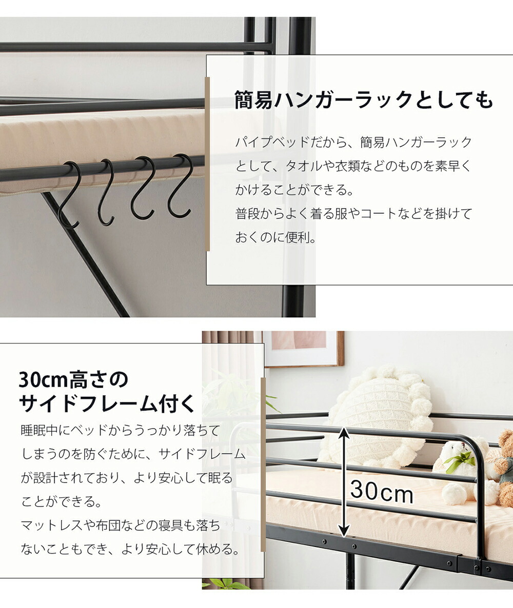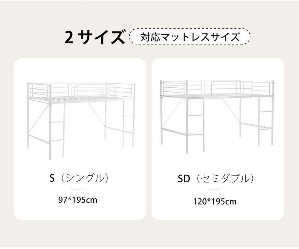 ロフトベッド パイプベッド ロータイプ シングル セミダブル ブラック ホワイト