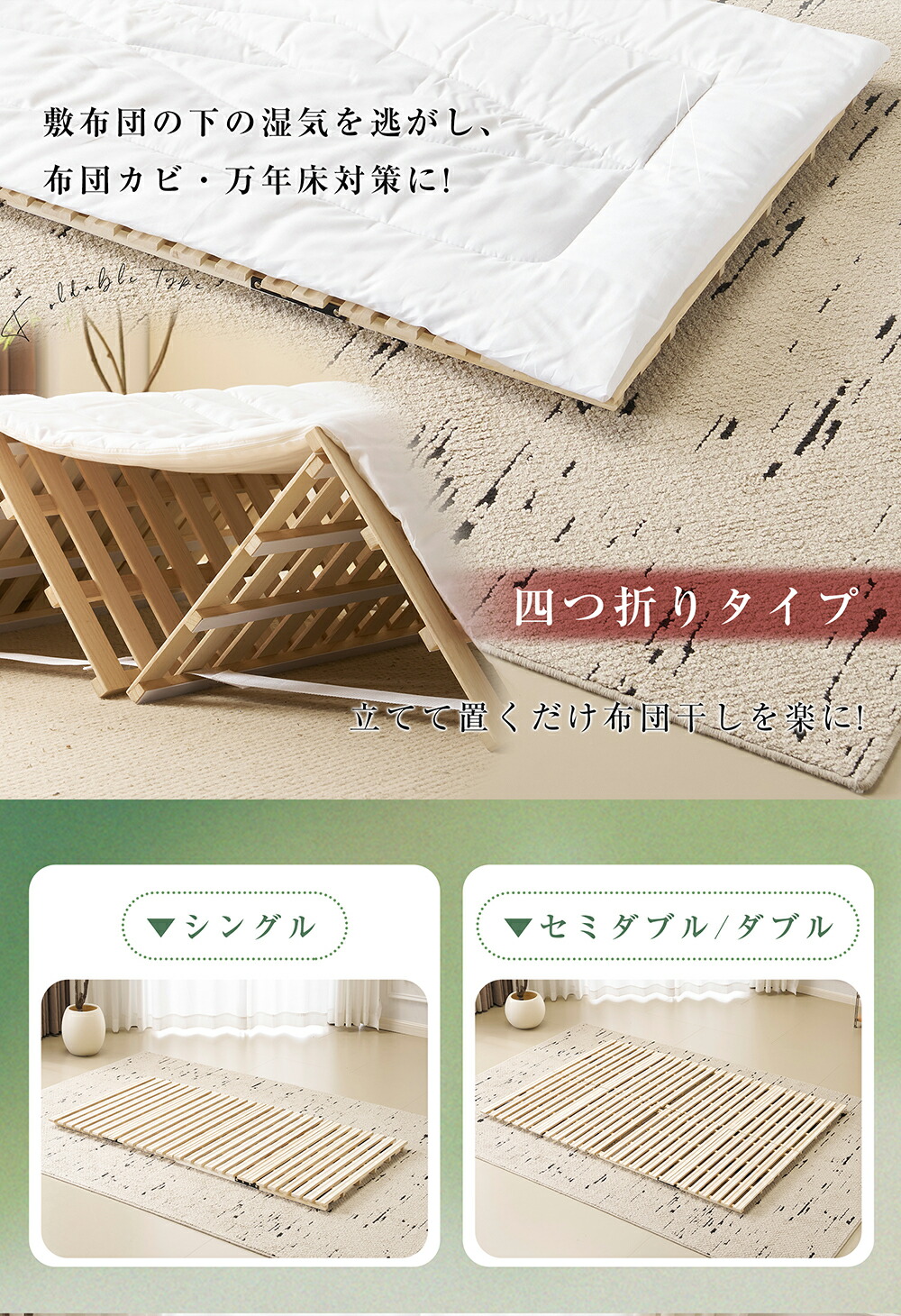 すのこベッド 折りたたみ 爽快 折りた シングル セミダブル ダブル シングルx2個 セミダブルx2個 ダブルx2個