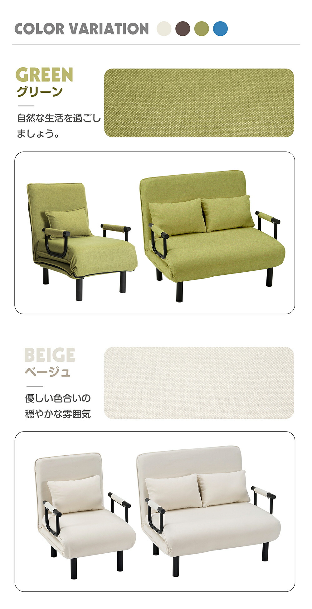 折りたたみソファー ソファーベッド 1 ベージュ グリーン ネービーブルー ダークブラウン 1人掛け 2人掛け