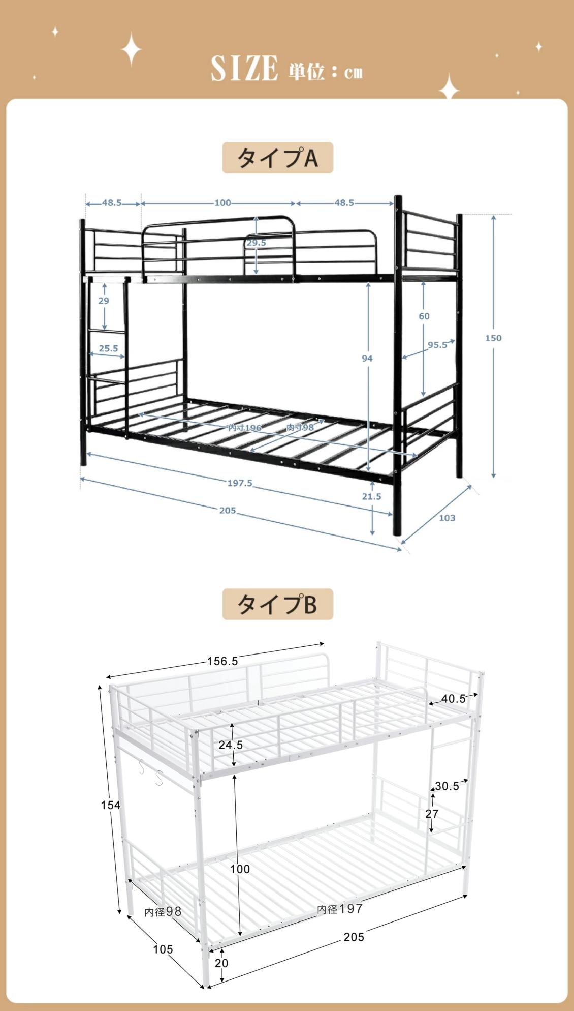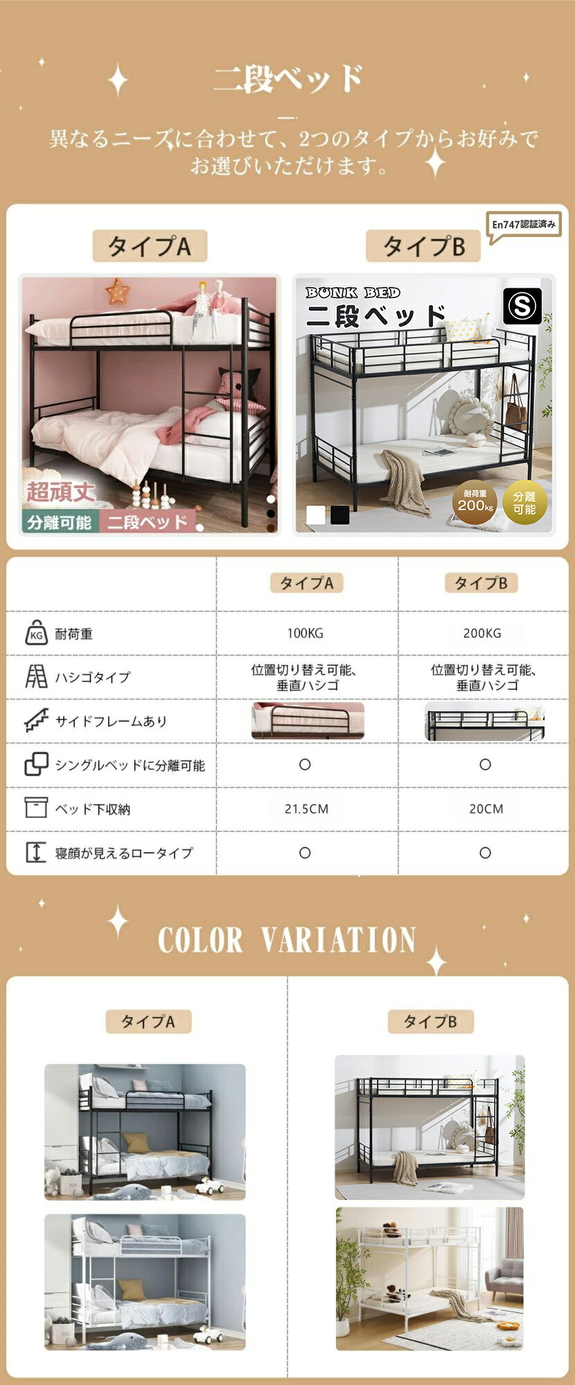 1年保証 二段ベッド 2段ベッド 三段 ホワイト ブラック タイプA タイプB