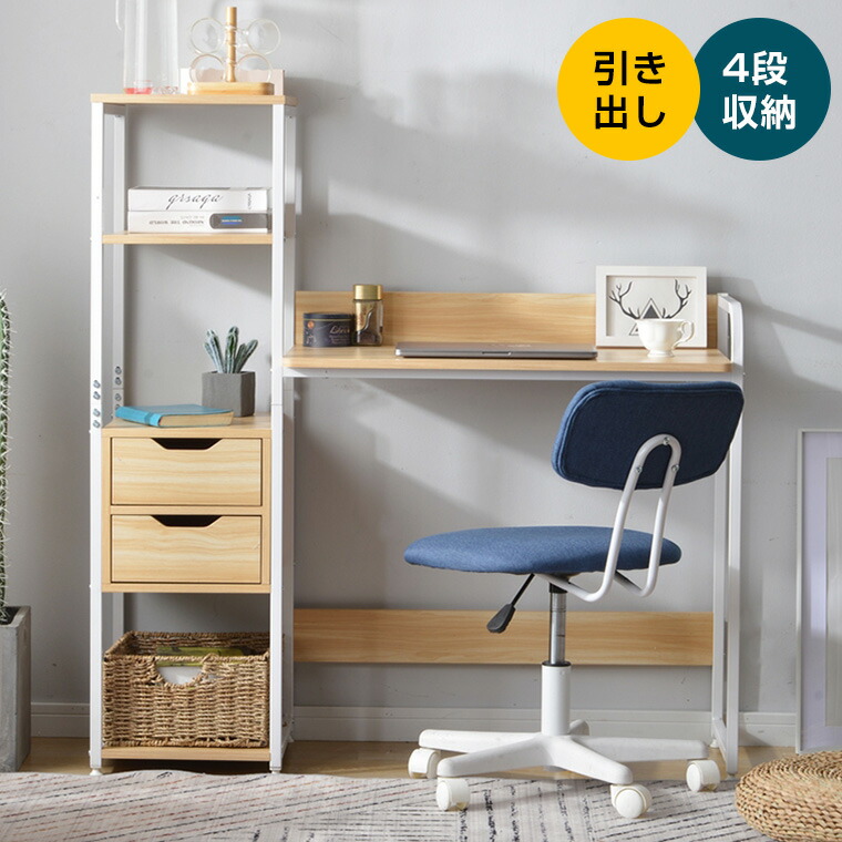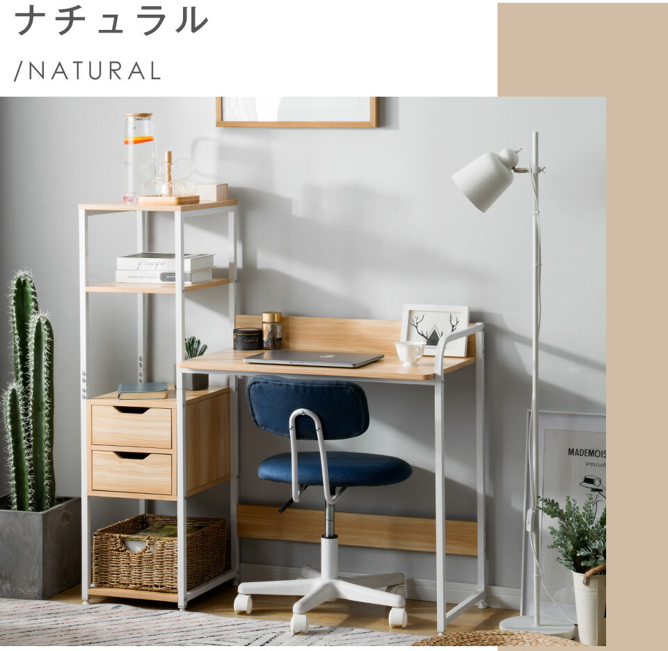 パソコンデスク 収納ラック付きデスク ナチュラル ダークブラウン ホワイト ブラック