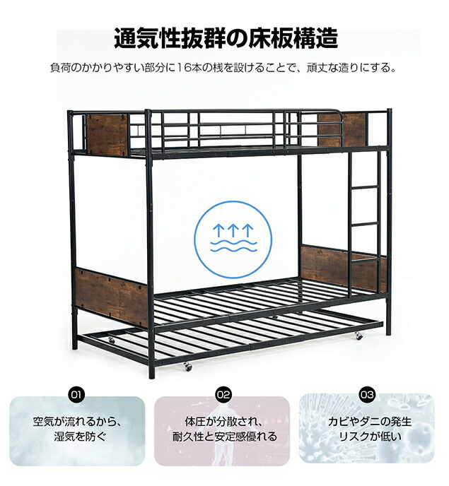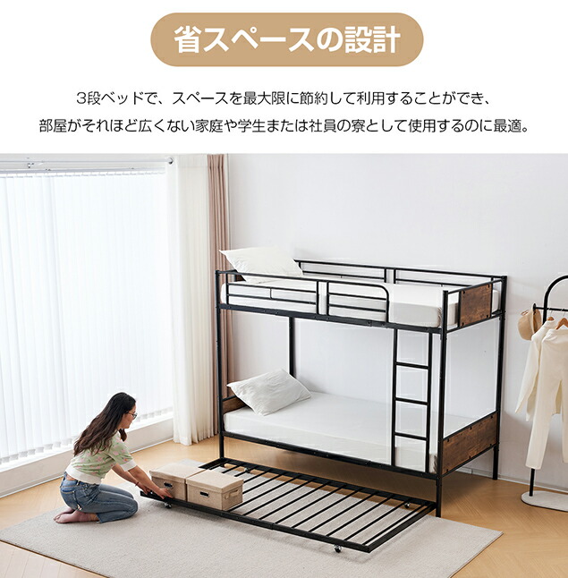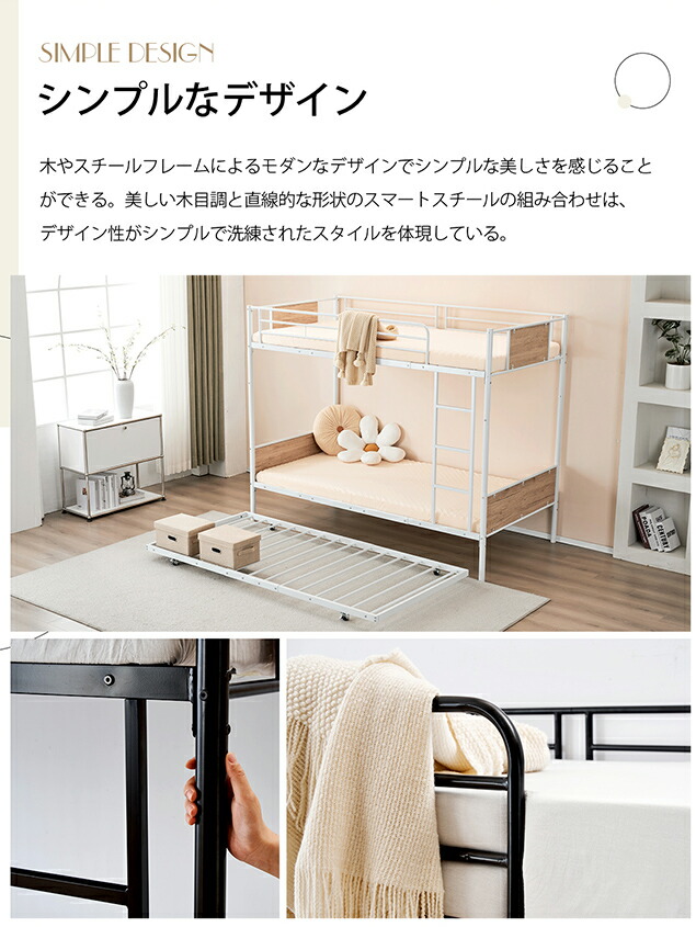 三段ベッド 二段ベッド シングルベッド 2段ベッド 3段ベッド ホワイト ブラック
