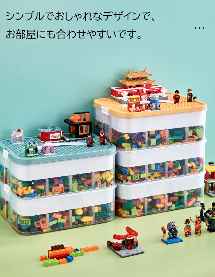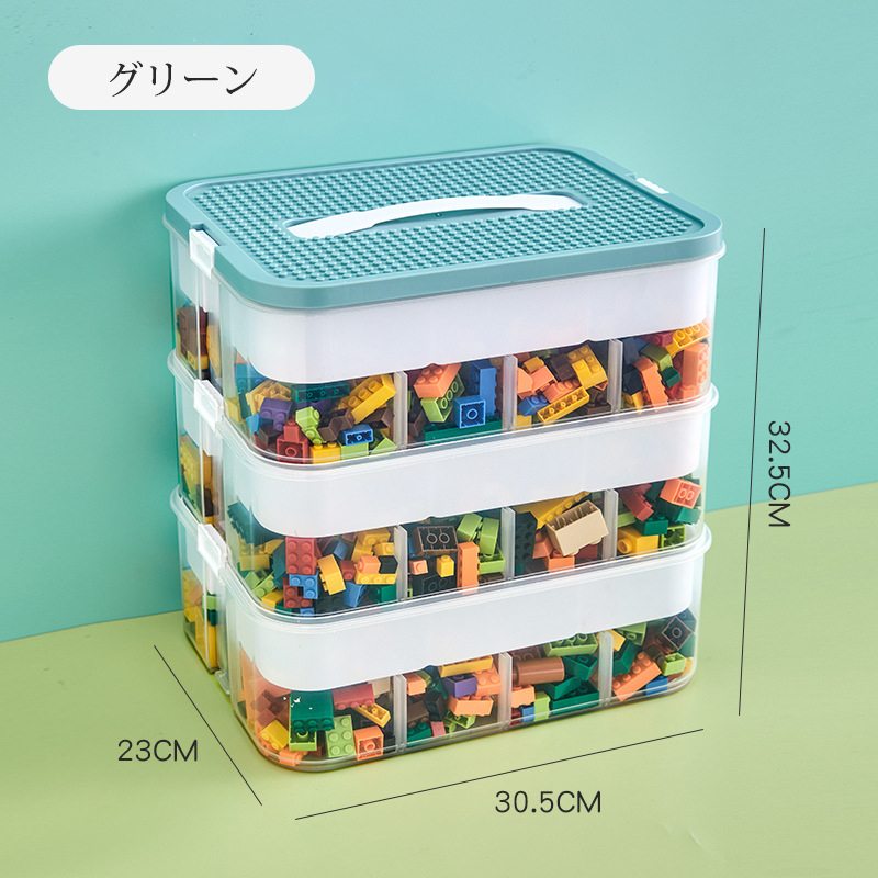 ブロック収納ボックス 収納 ケース お グリーン1層式 グリーン2層式 グリーン3層式 イエロー1層式 イエロー2層式 イエロー3層式