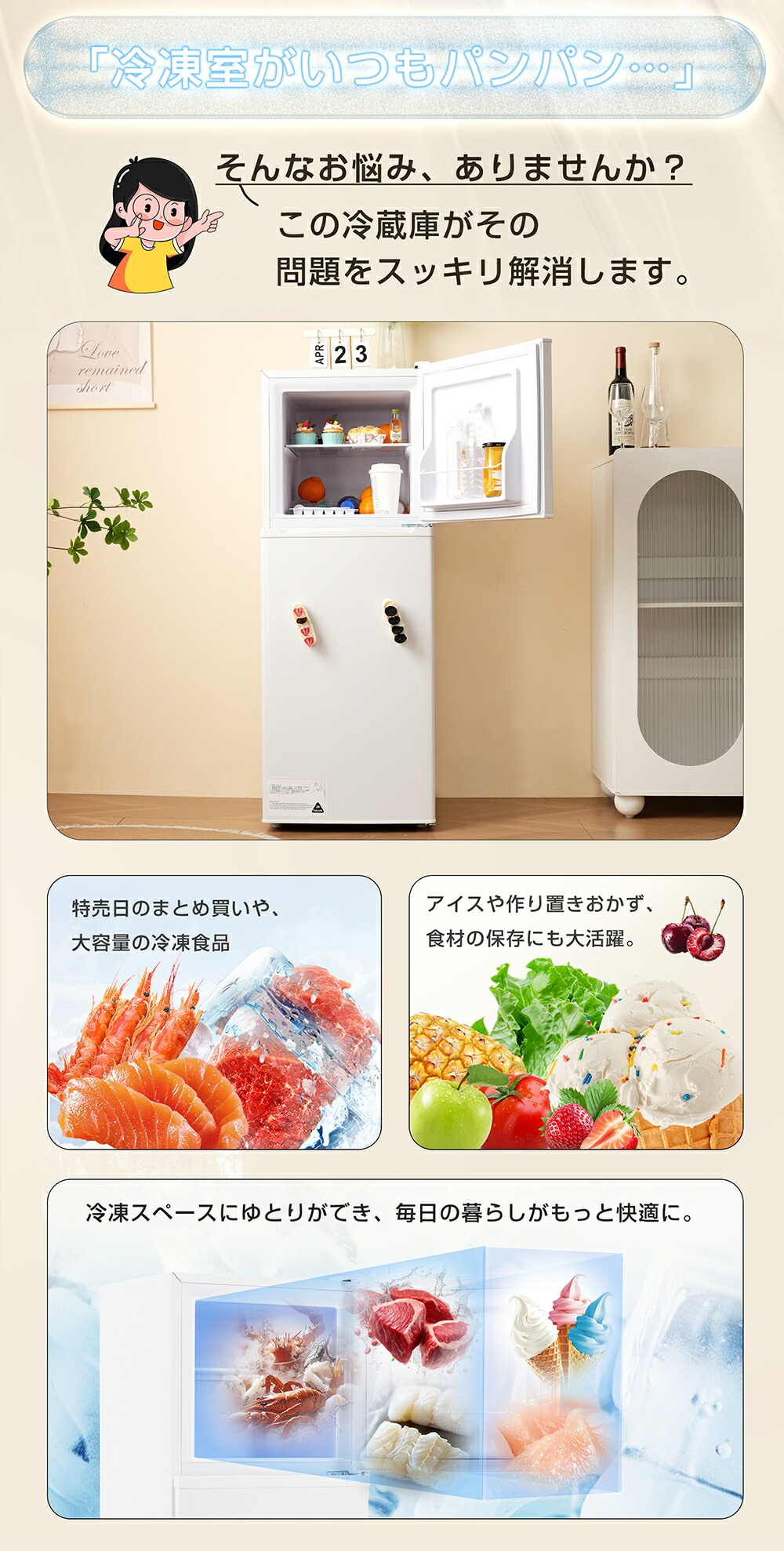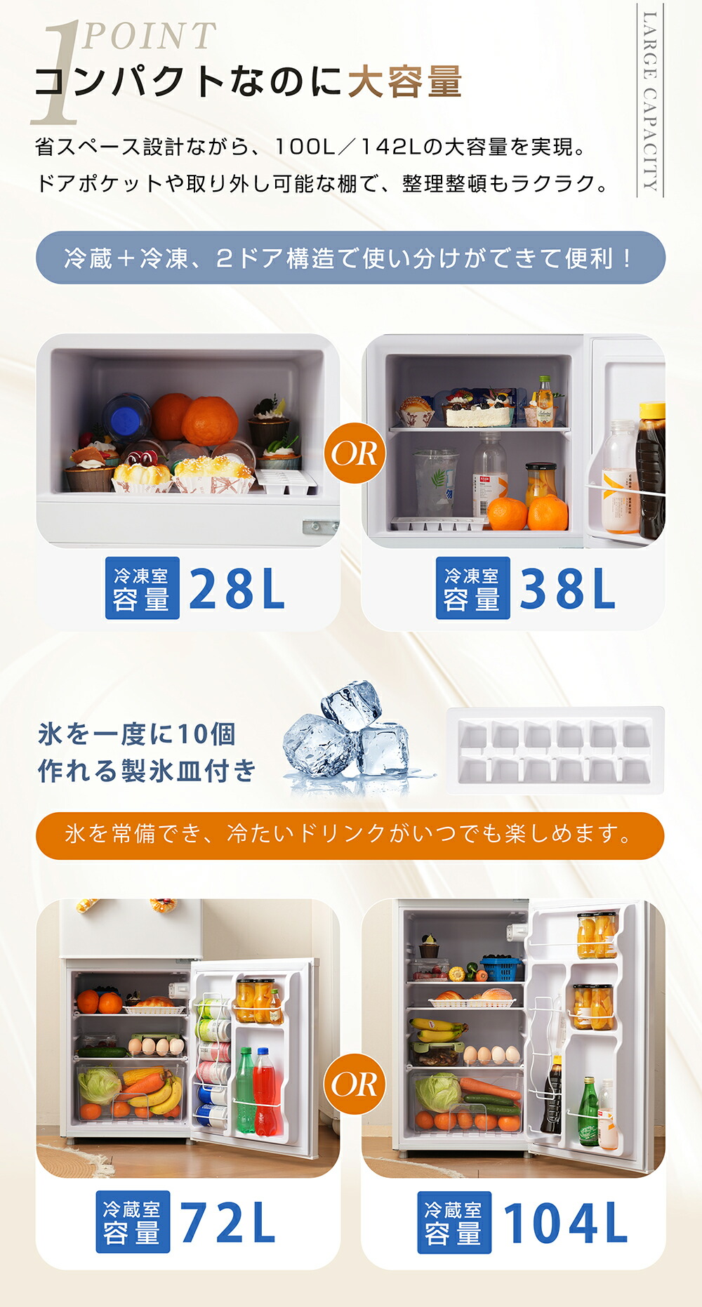 冷蔵庫 ひとり暮らし 冷凍庫付き 一人 100L 142L ホワイト ホワイト(1年延長保証付)