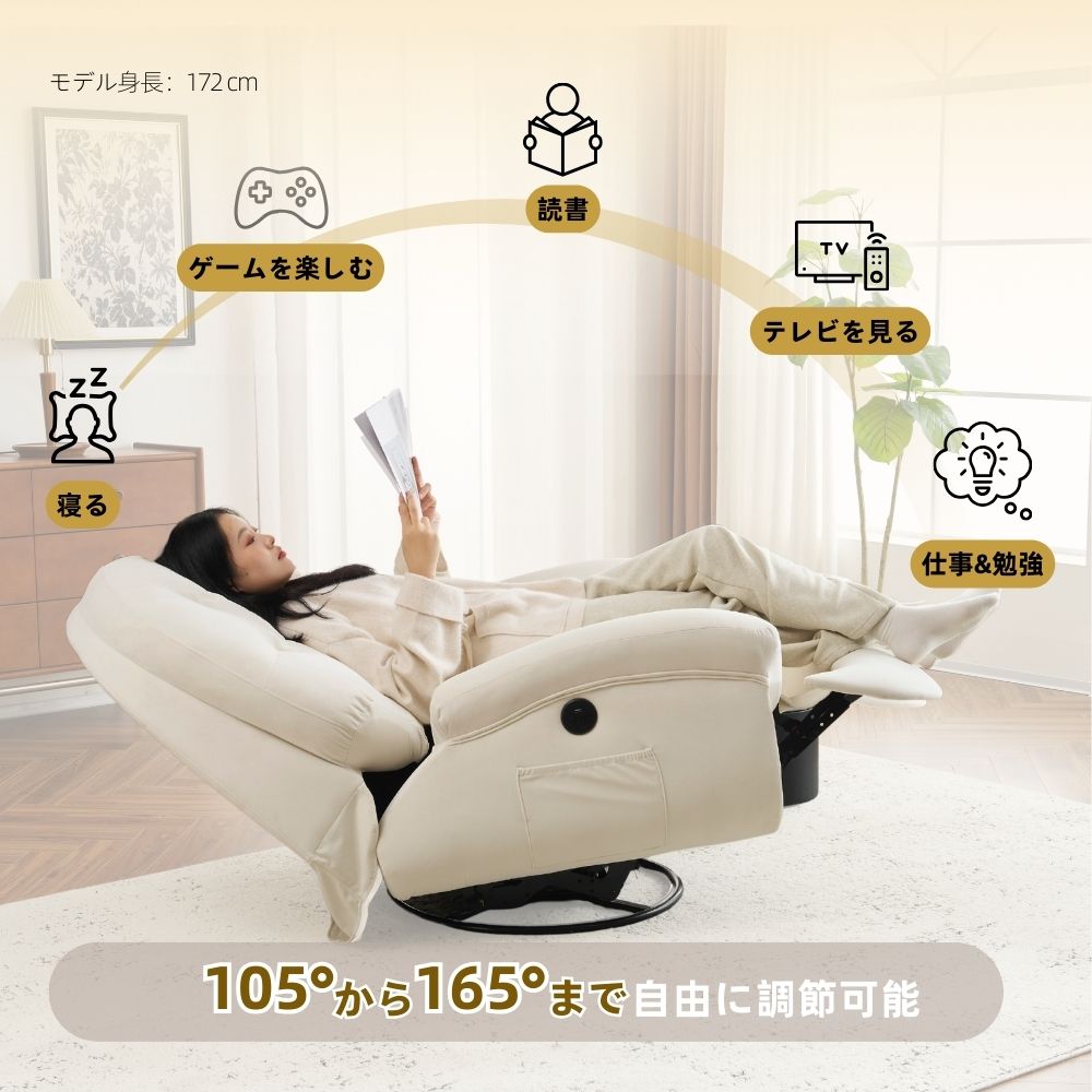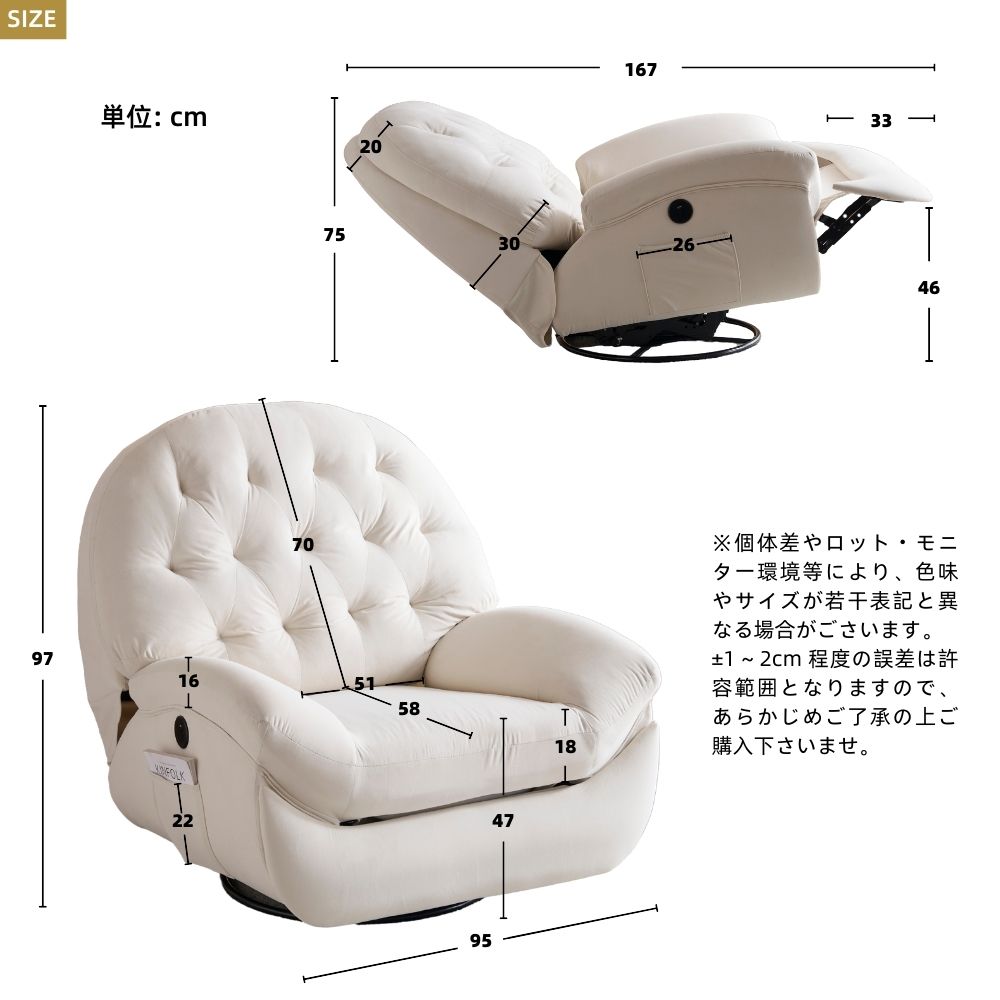 電動1人掛けソファー リクライニングチ ホワイト グレー