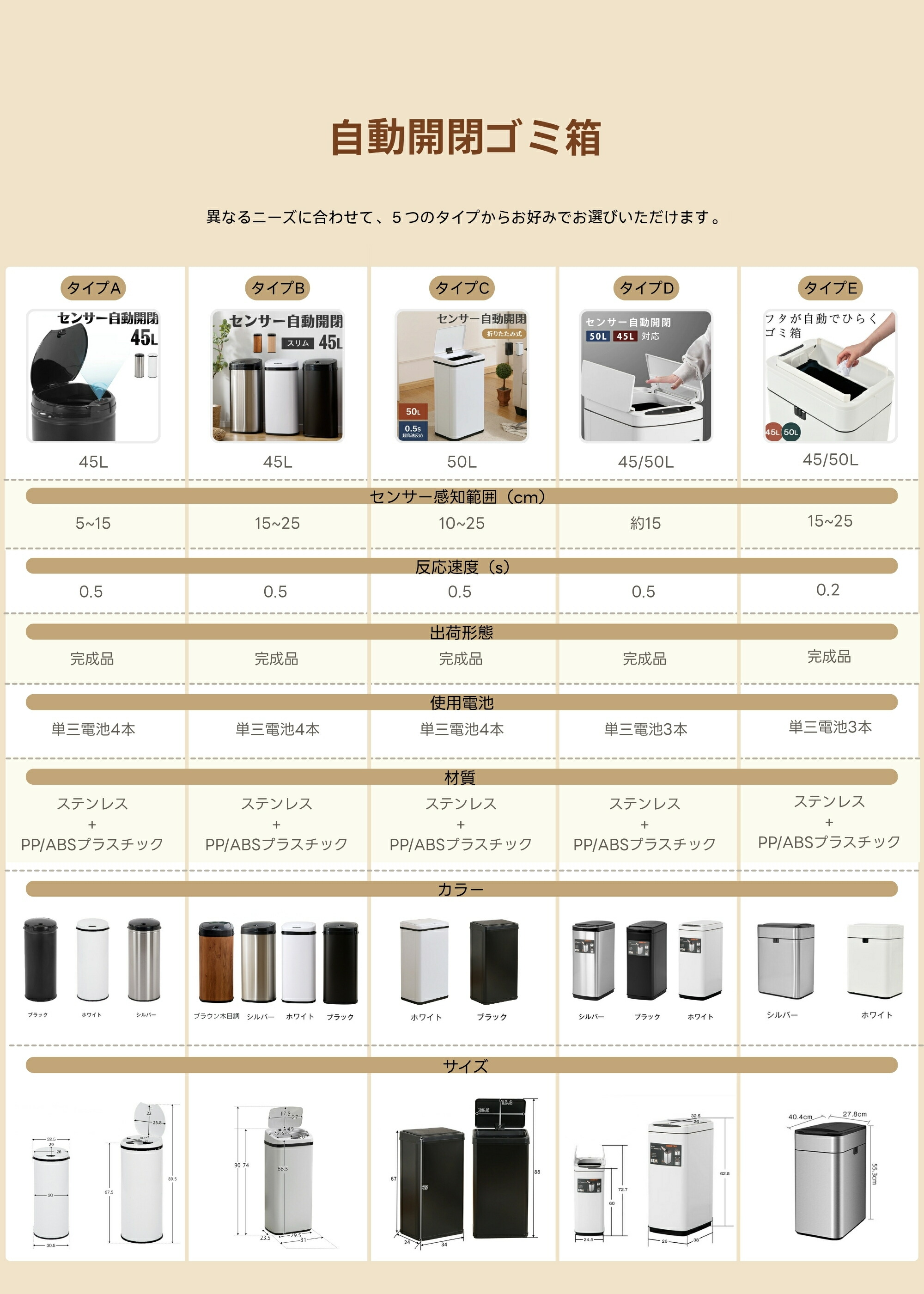 ゴミ箱 50L45L対応 おしゃれ 自 タイプB-45L タイプE-45/50L シルバー ブラック ホワイト ブラウン木目調