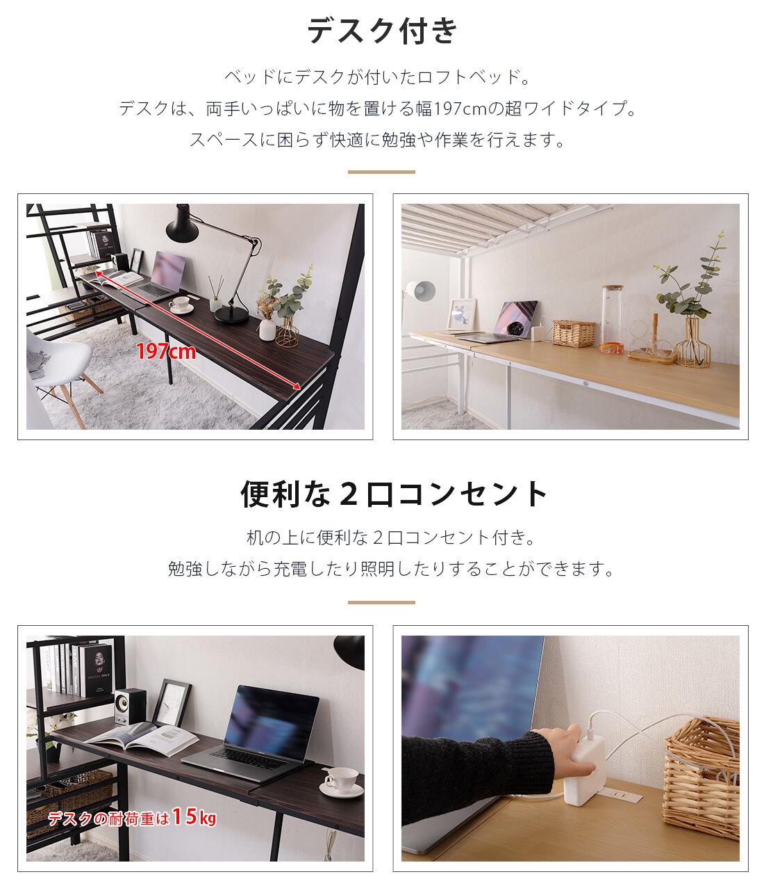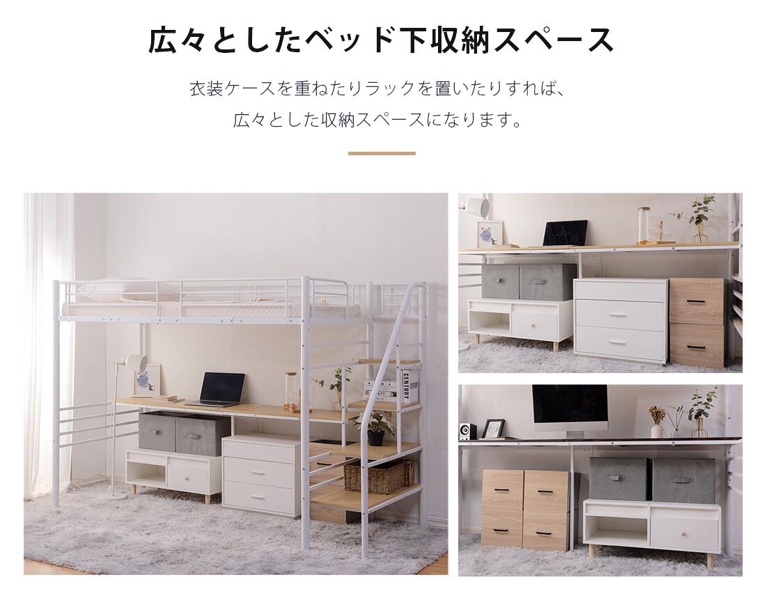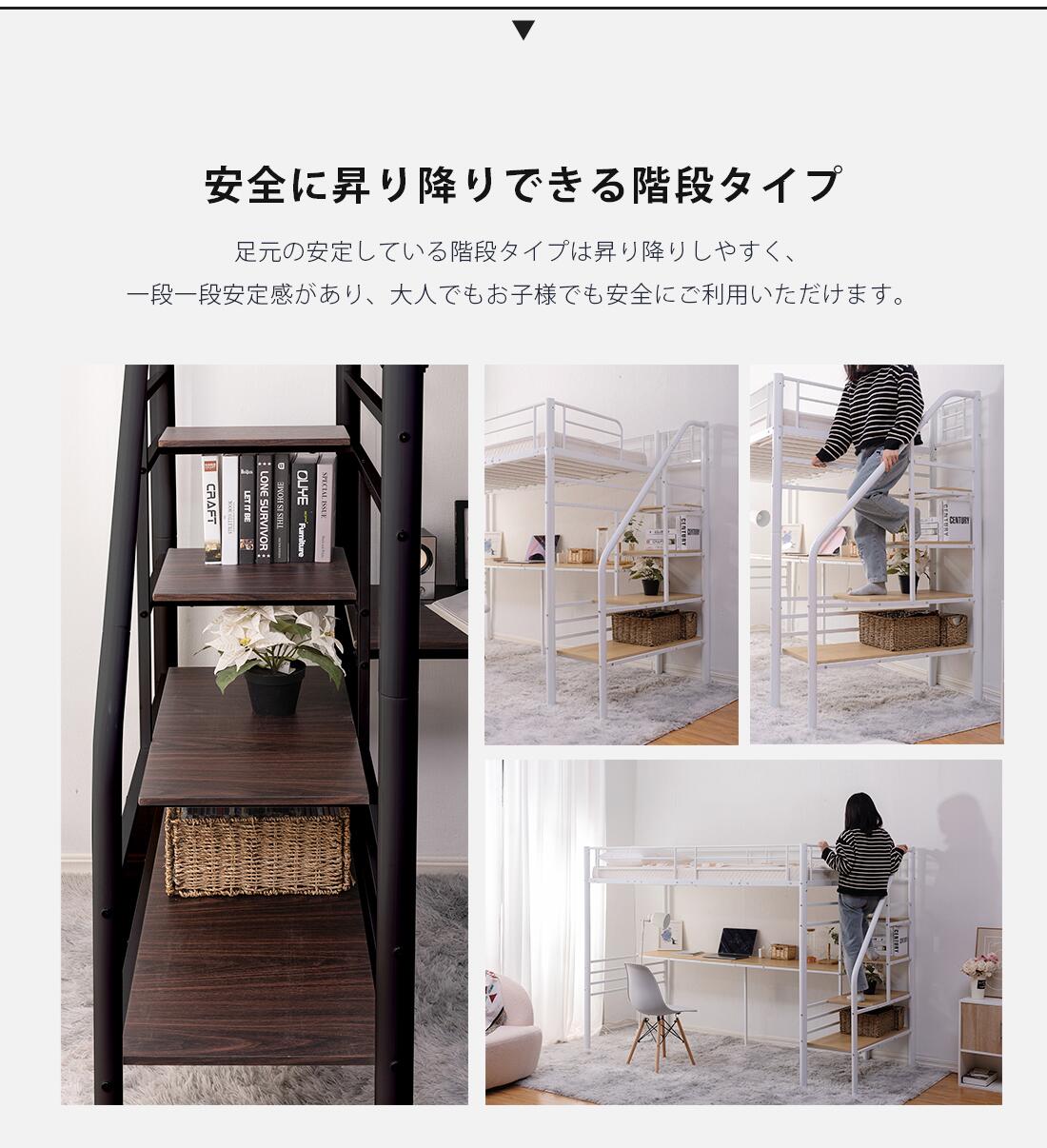 ロフトベッド 階段付き パイプベッド ブラック ホワイト