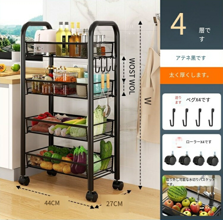 実用的なキッチン収納ラック、家庭用収納 3層のブラック 3層の白 4層のブラック 4層の白 5層のブラック 5層の白
