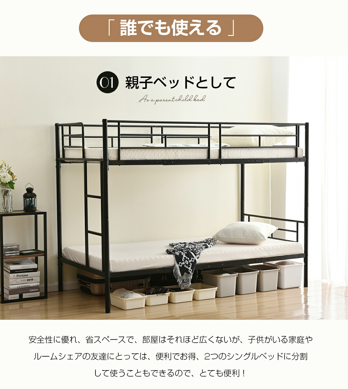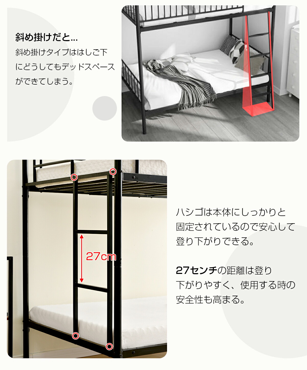 二段ベッド 2段ベッド 三段ベッド 3 ブラック ホワイト なし ブラック ホワイト