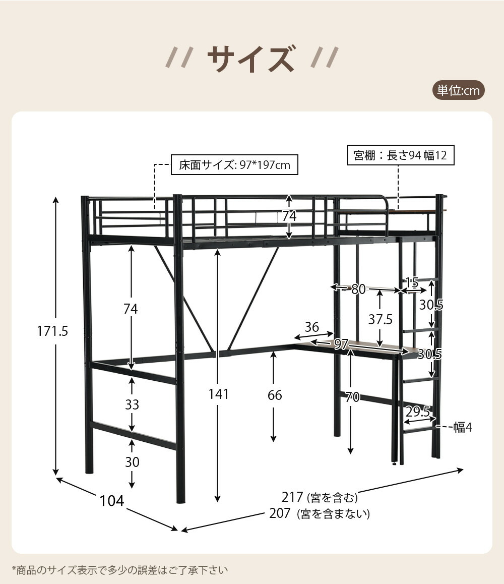 ロフトベッド パイプベッド シングル ホワイト ブラック