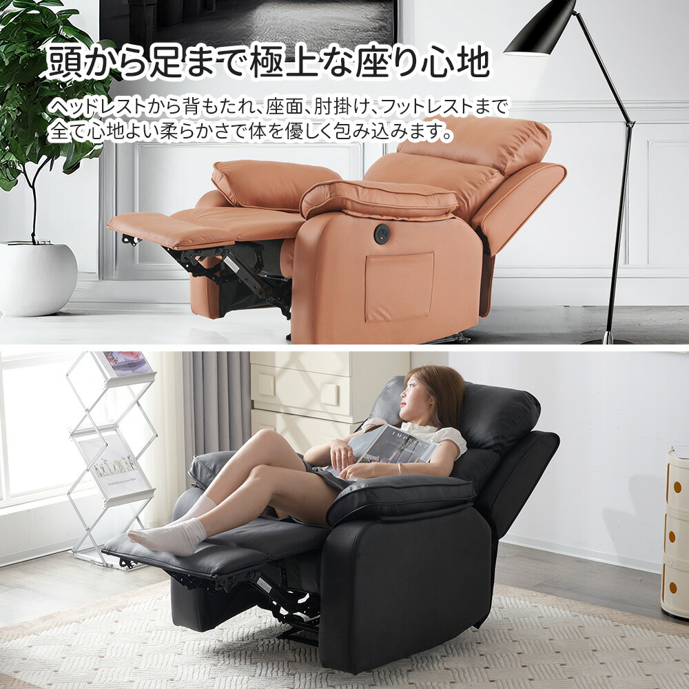 リクライニングソファー USBポート付 ライトグレー キャメル ブラック