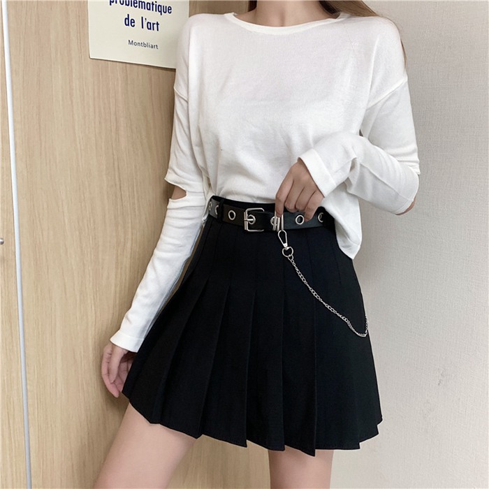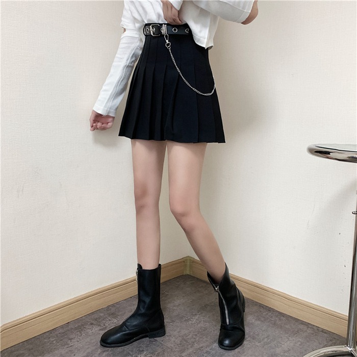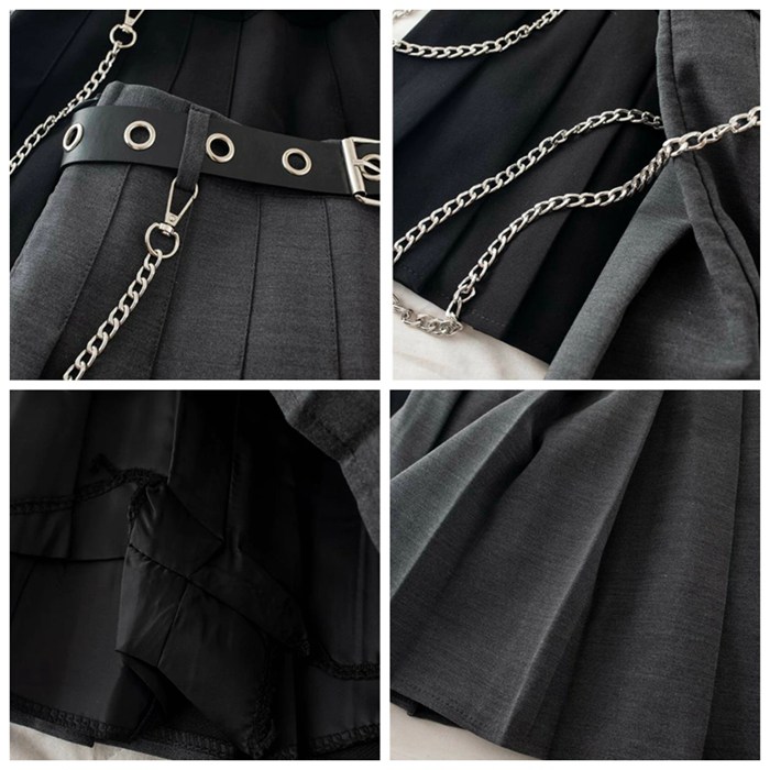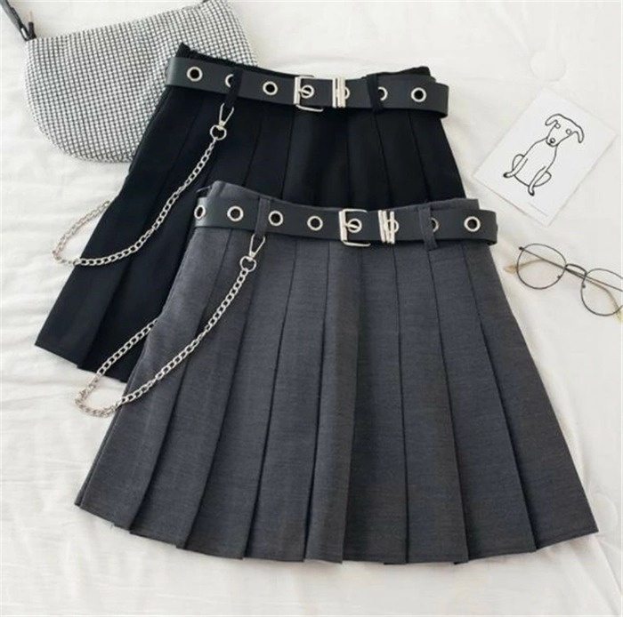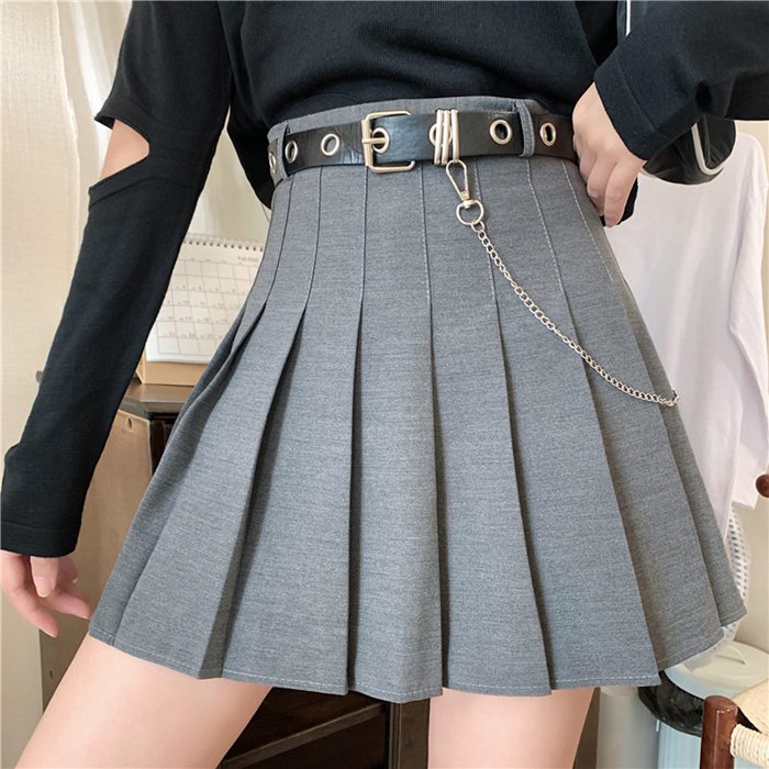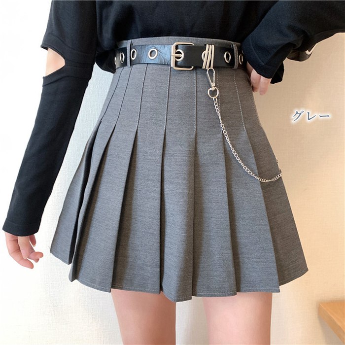 チェーン付き プリーツスカート ベルト レディースファッション 人気 ブラック グレー S M L XL XXL
