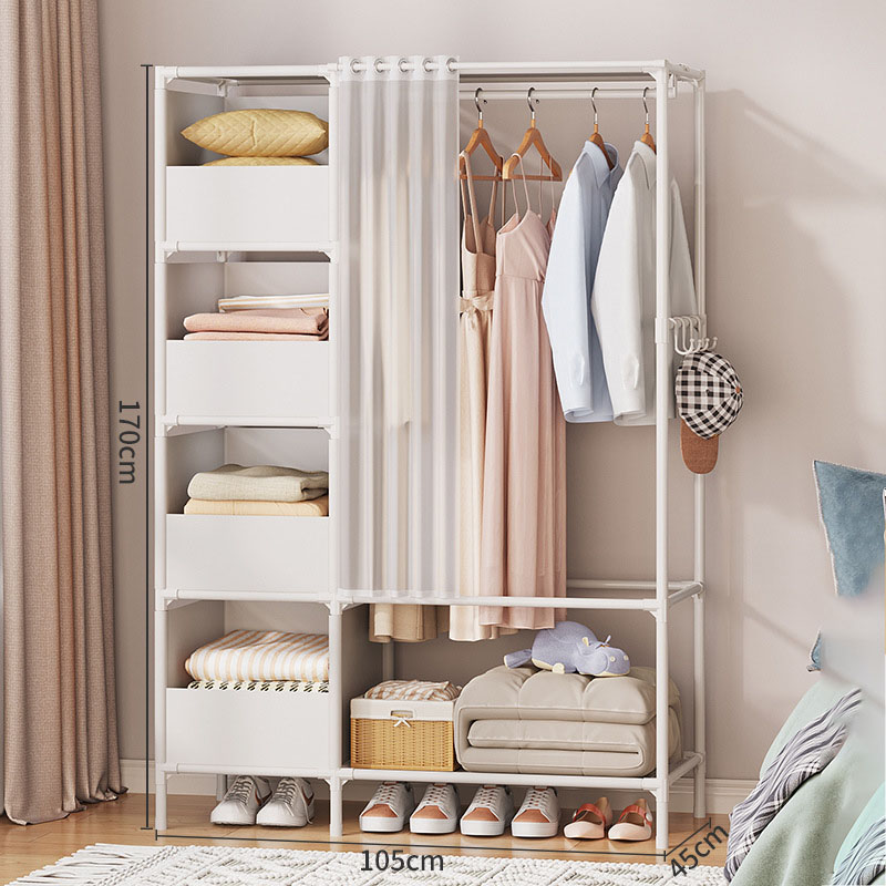 ワードローブ クローゼット ハンガーラ ホワイト ブラック イエロー グレー 暖簾なし 暖簾付き