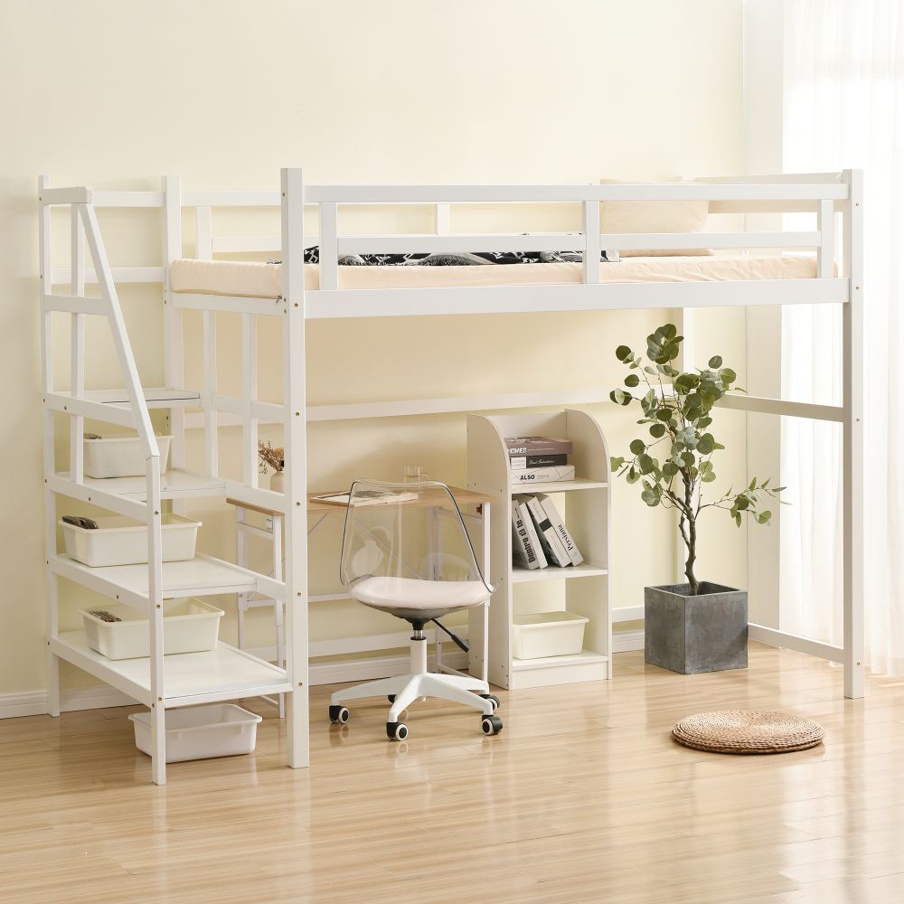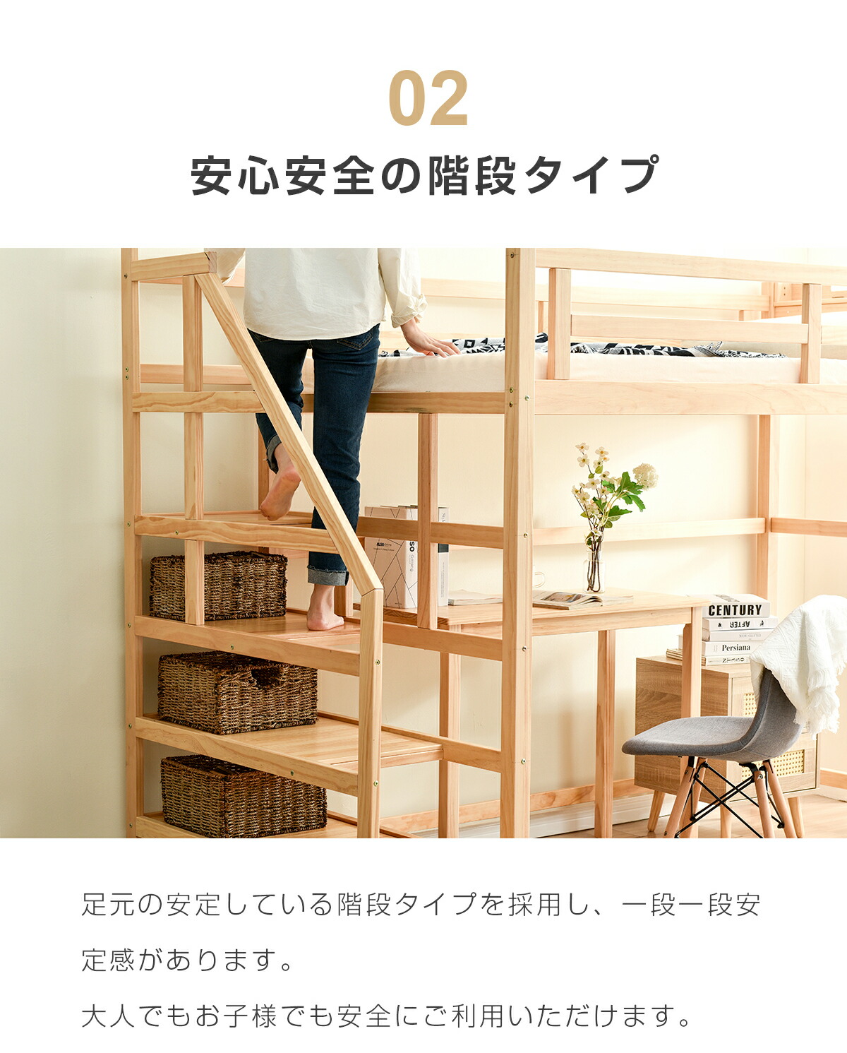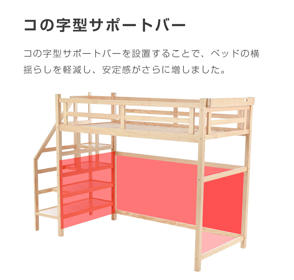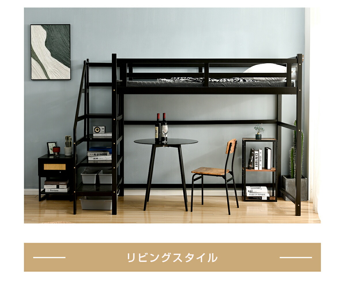 ロフトベッド 階段付き 宮付き 収納棚 ナチュラル ホワイト