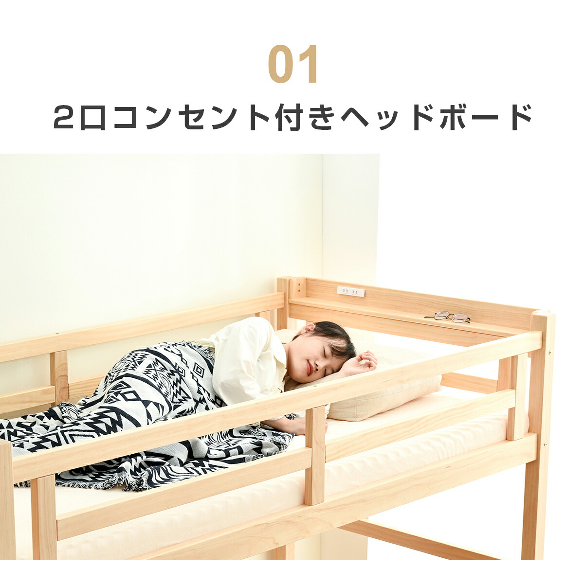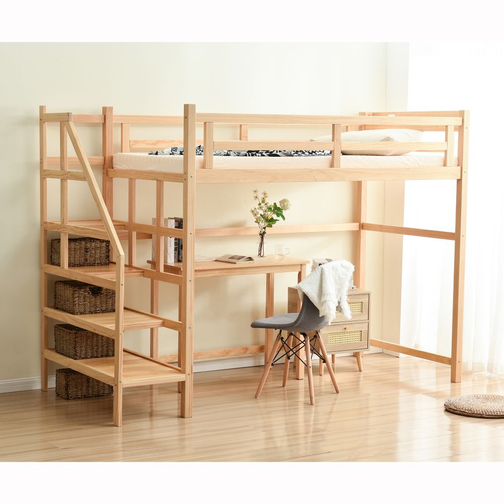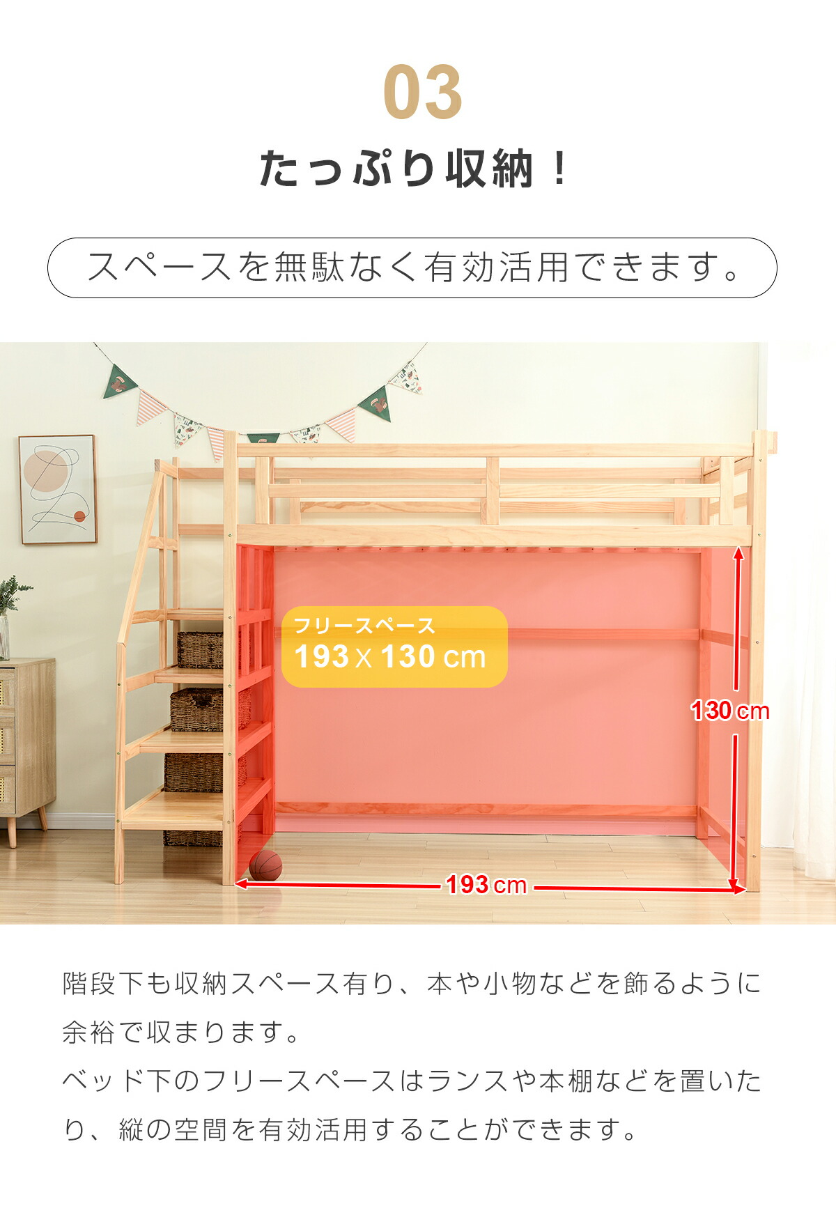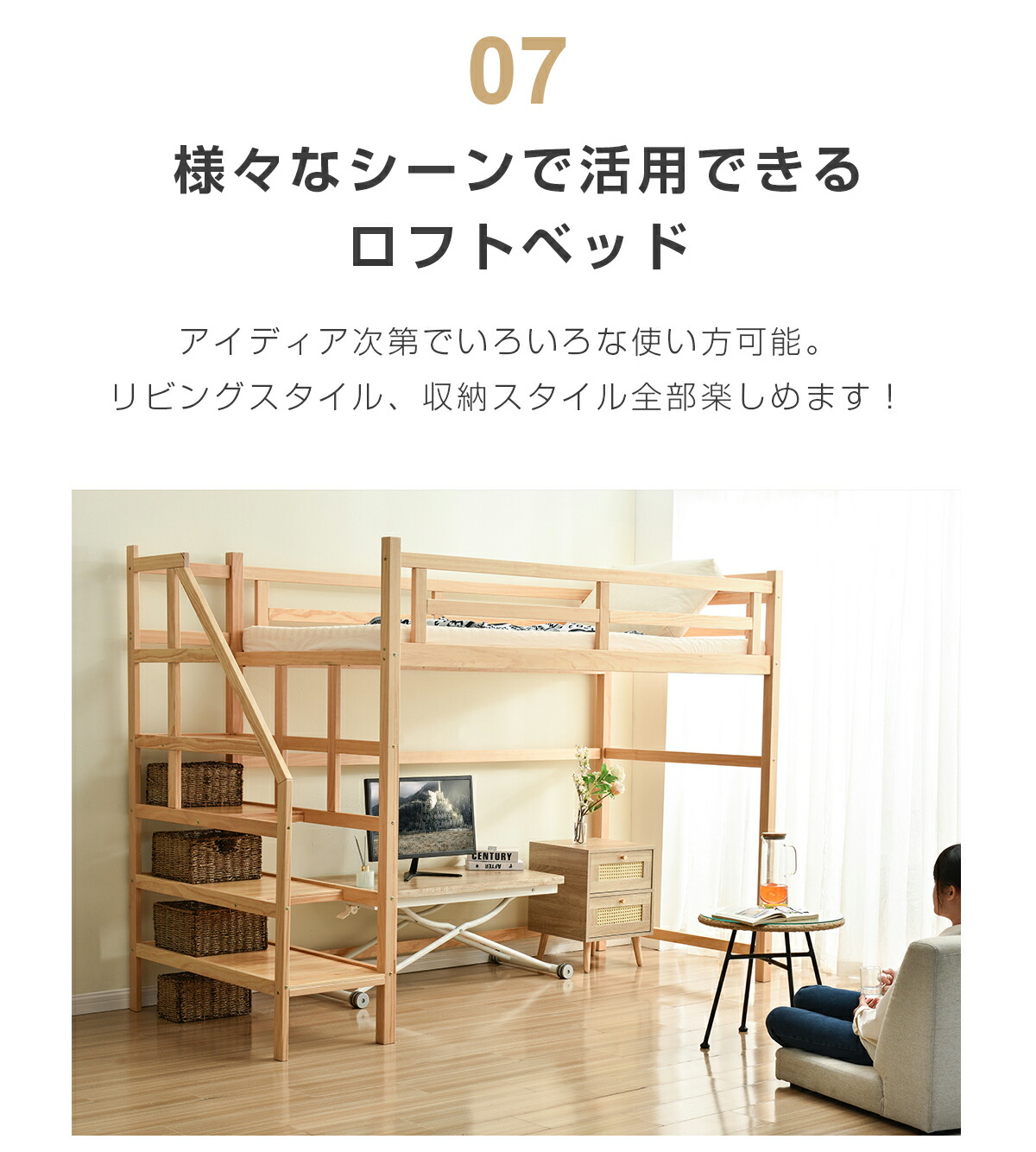 ロフトベッド 階段付き 宮付き 収納棚 ナチュラル ホワイト