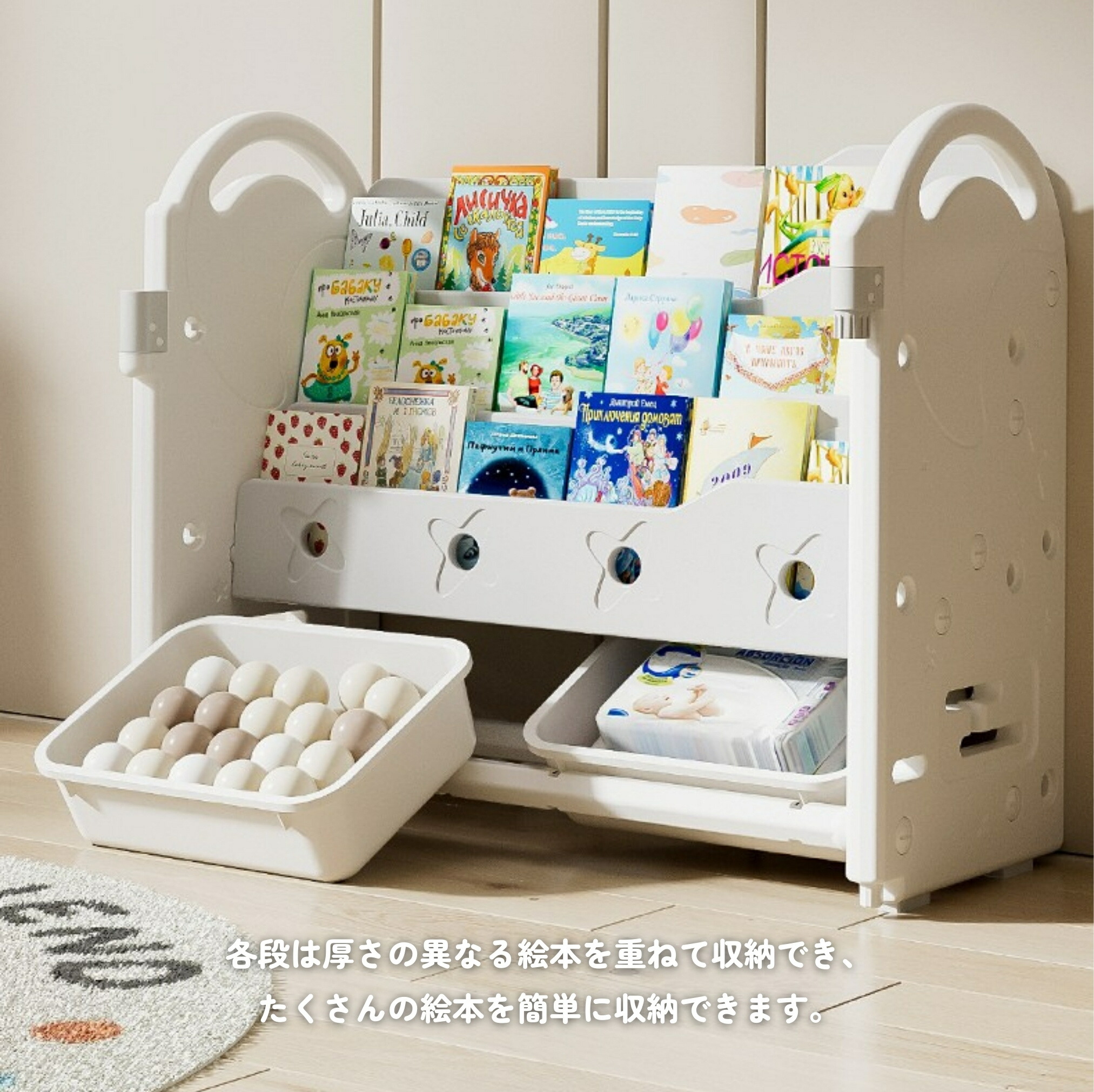 おもちゃ 収納 ラック 3段 4段 棚 おもちゃ箱 おもちゃ棚&絵本棚&描きボード 玩具箱 収納3段ラック 絵本棚 スリム おしゃれ ワイドタイプ 大容量 組立カンタン キッズ 入学 入 こども