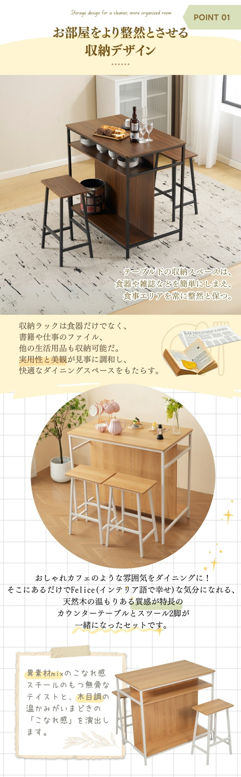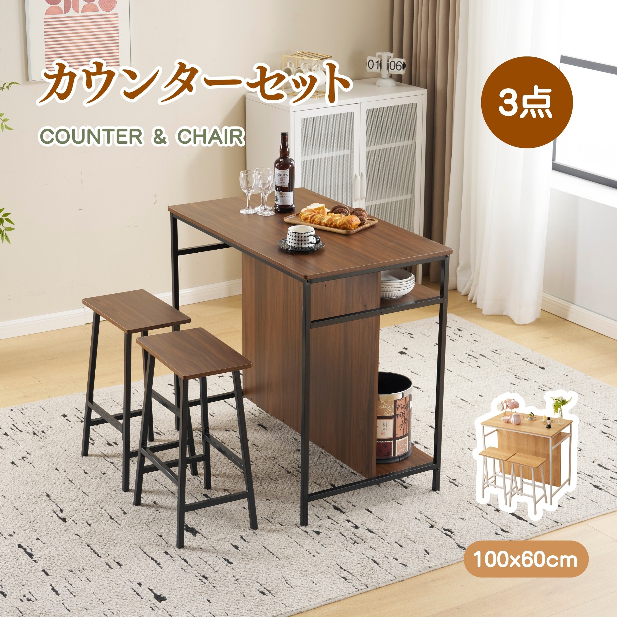 新発売カウンターテーブル スツール 3 ブラウン+ブラック ナチュラル+ホワイト