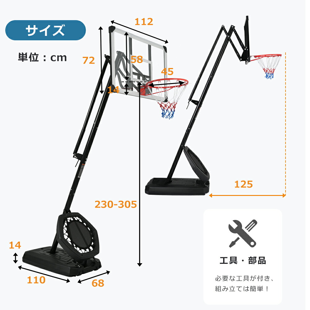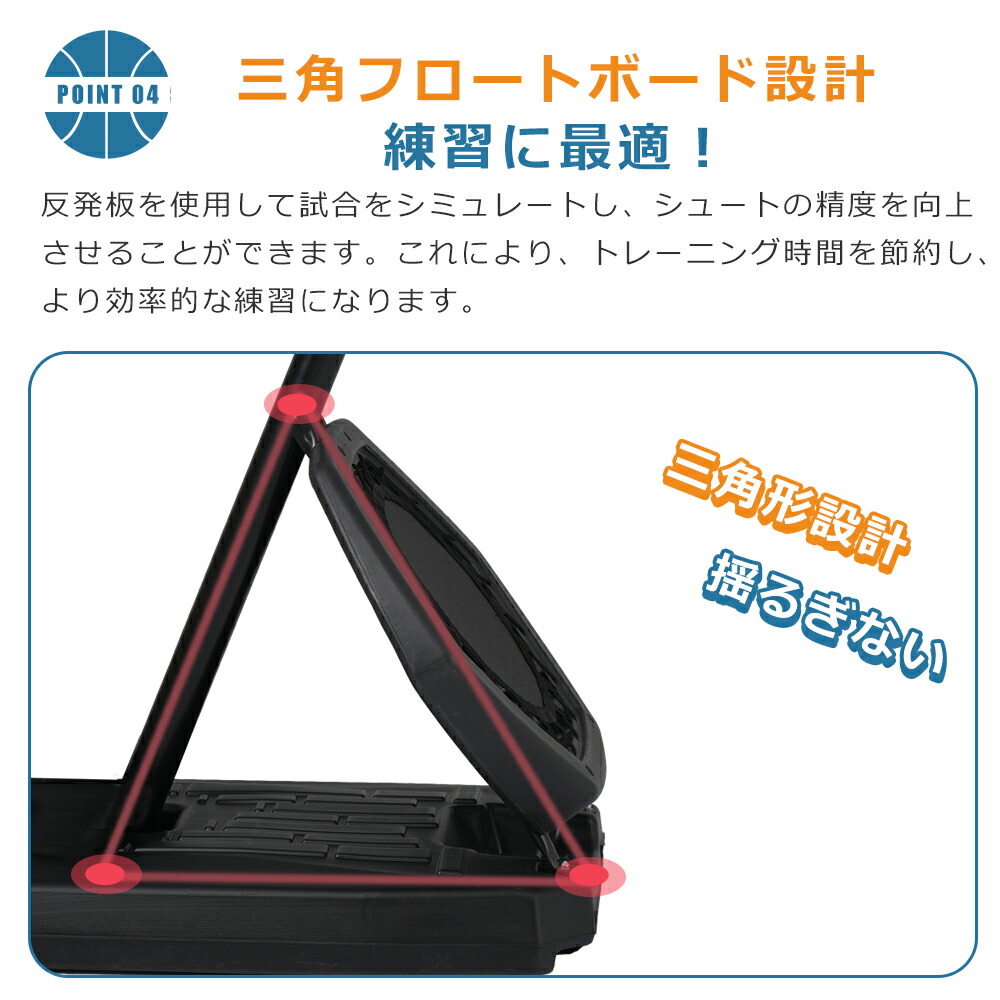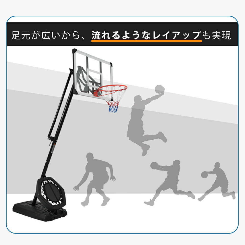 バスケットゴール ハンドルを回すだけの簡単高さ無段階調節 フロートボード付き公式&ミニバス対応 230-305cm 移動可 工具付き ゴールネット バックボード リング 一般用 屋外用 フロ ミニバス