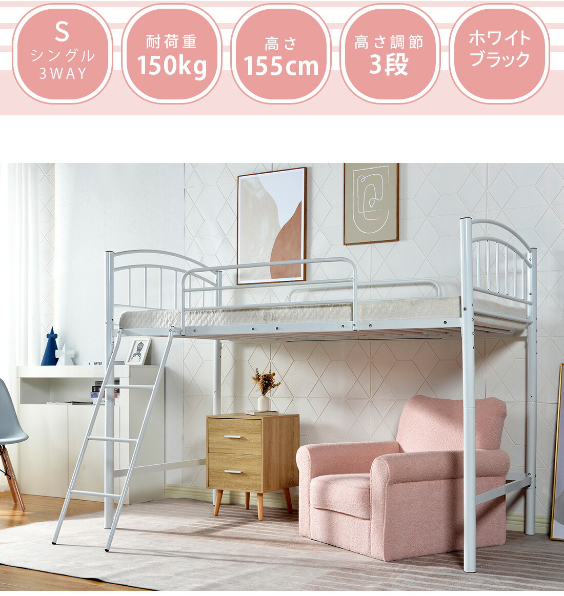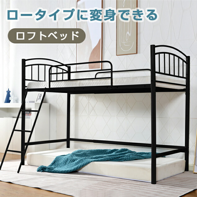 ロフトベッド 2way ロータイプ 分 ブラック ホワイト