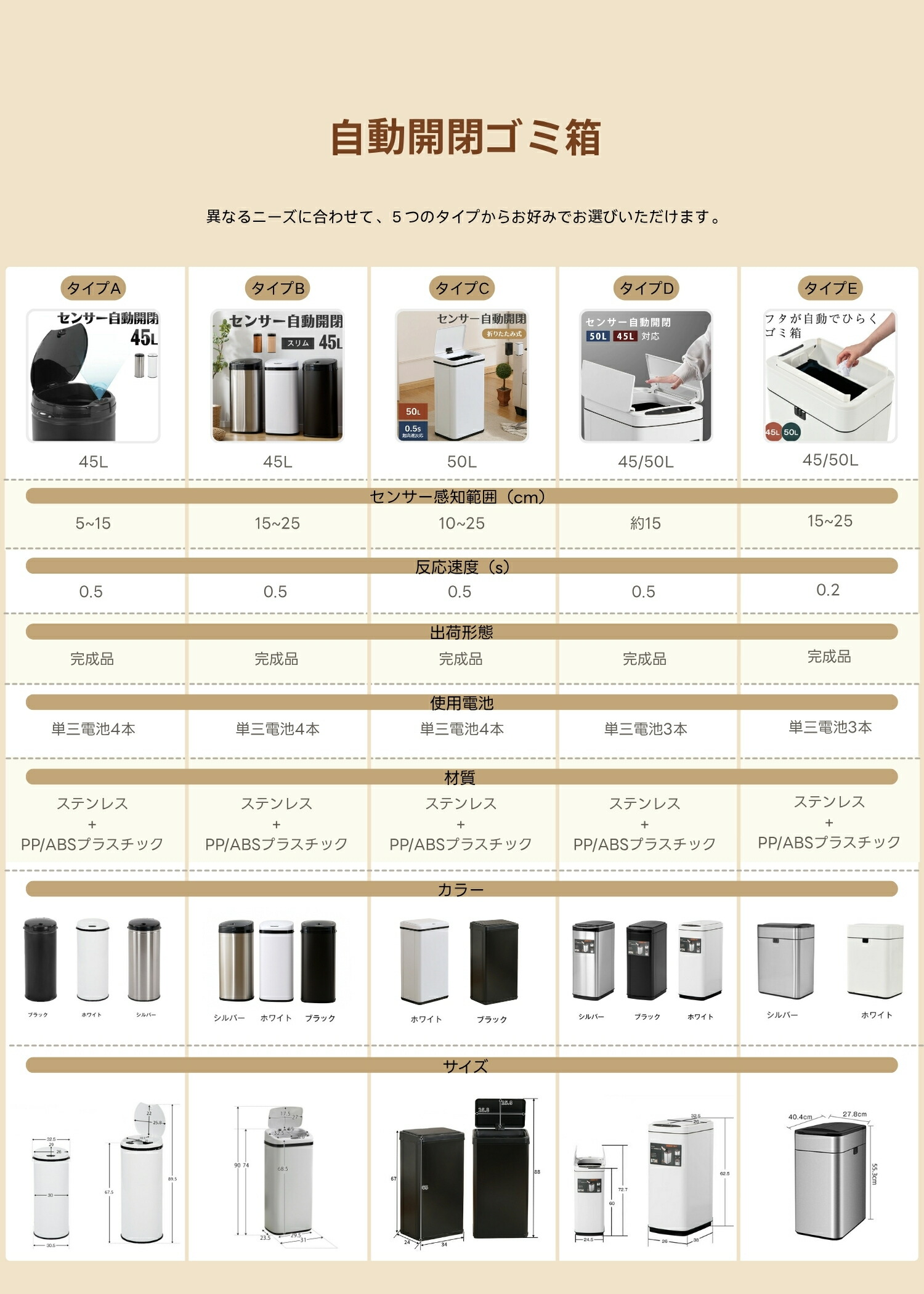 ゴミ箱 45リットル 50リットル 自 タイプB-45L タイプE-45/50L ホワイト ブラック シルバー ブラウン木目調