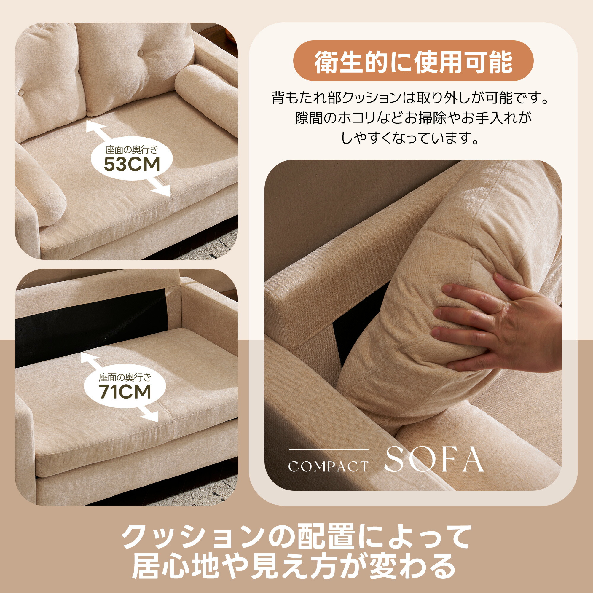 新発売 ソファー 2人掛け 枕付き ソ ベージュ グレー エクルベージュ ブラウン
