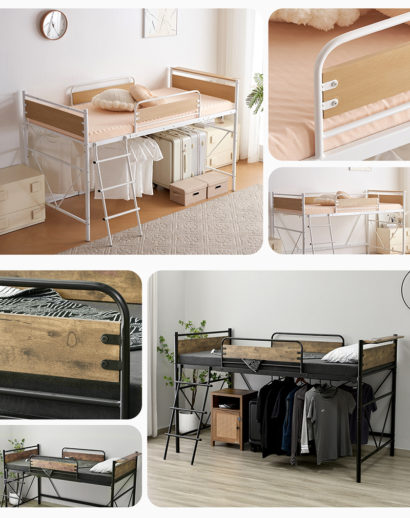 ロフトベッド パイプベッド シングル ベッドのみ グレーマットレス付き