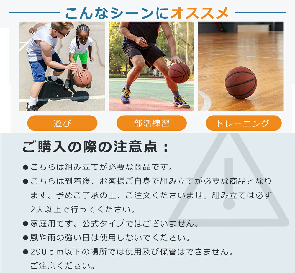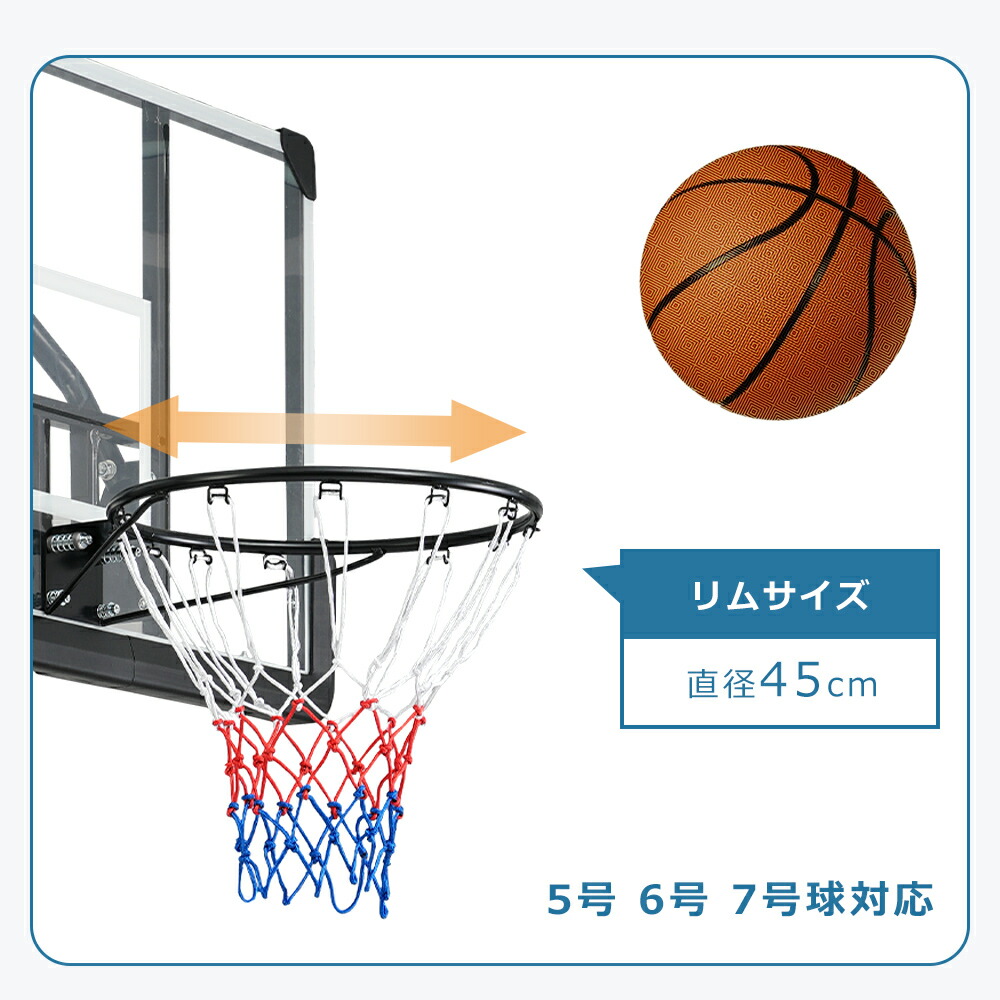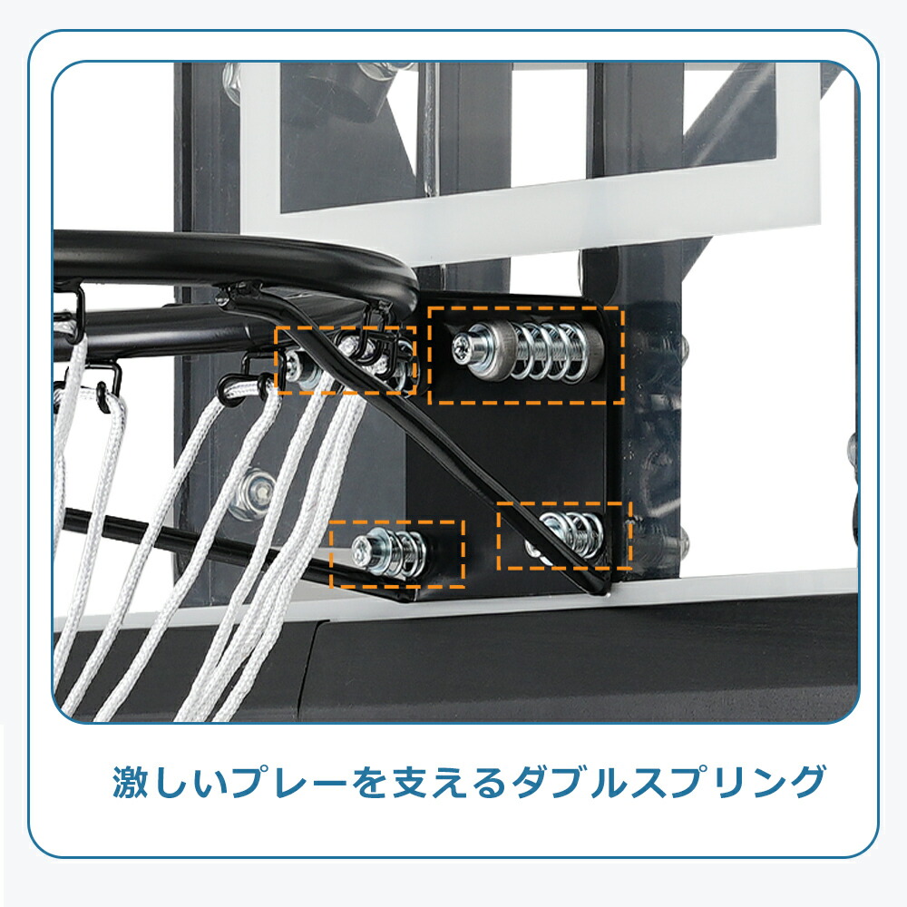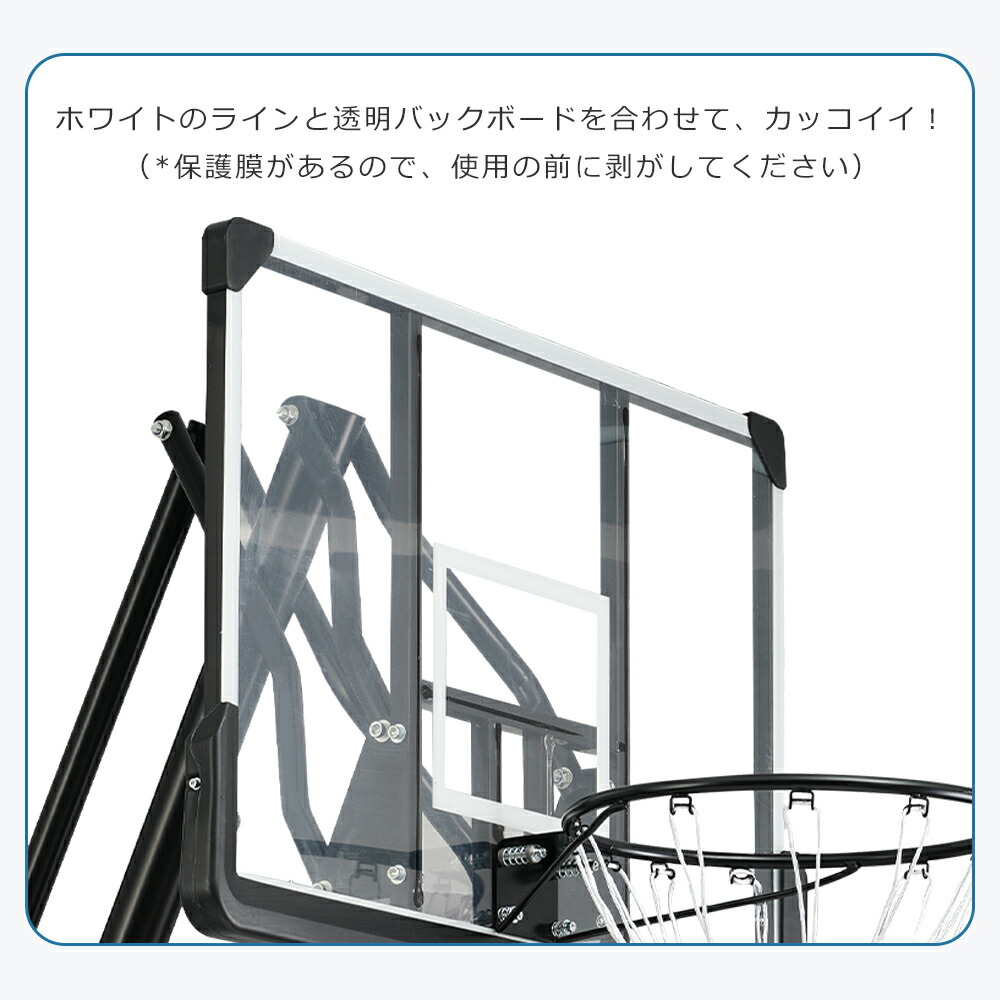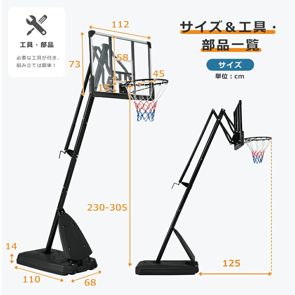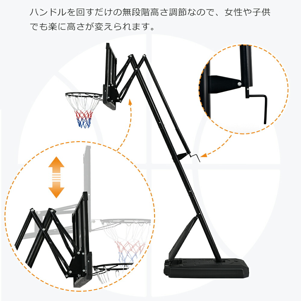 バスケットゴール ハンドルを回すだけの簡単高さ調節 公式&ミニバス対応 バックボード リング ミニバス 230-305cm 移動可 工具付き 一般用 屋外用 1年保証付き ゴールネット