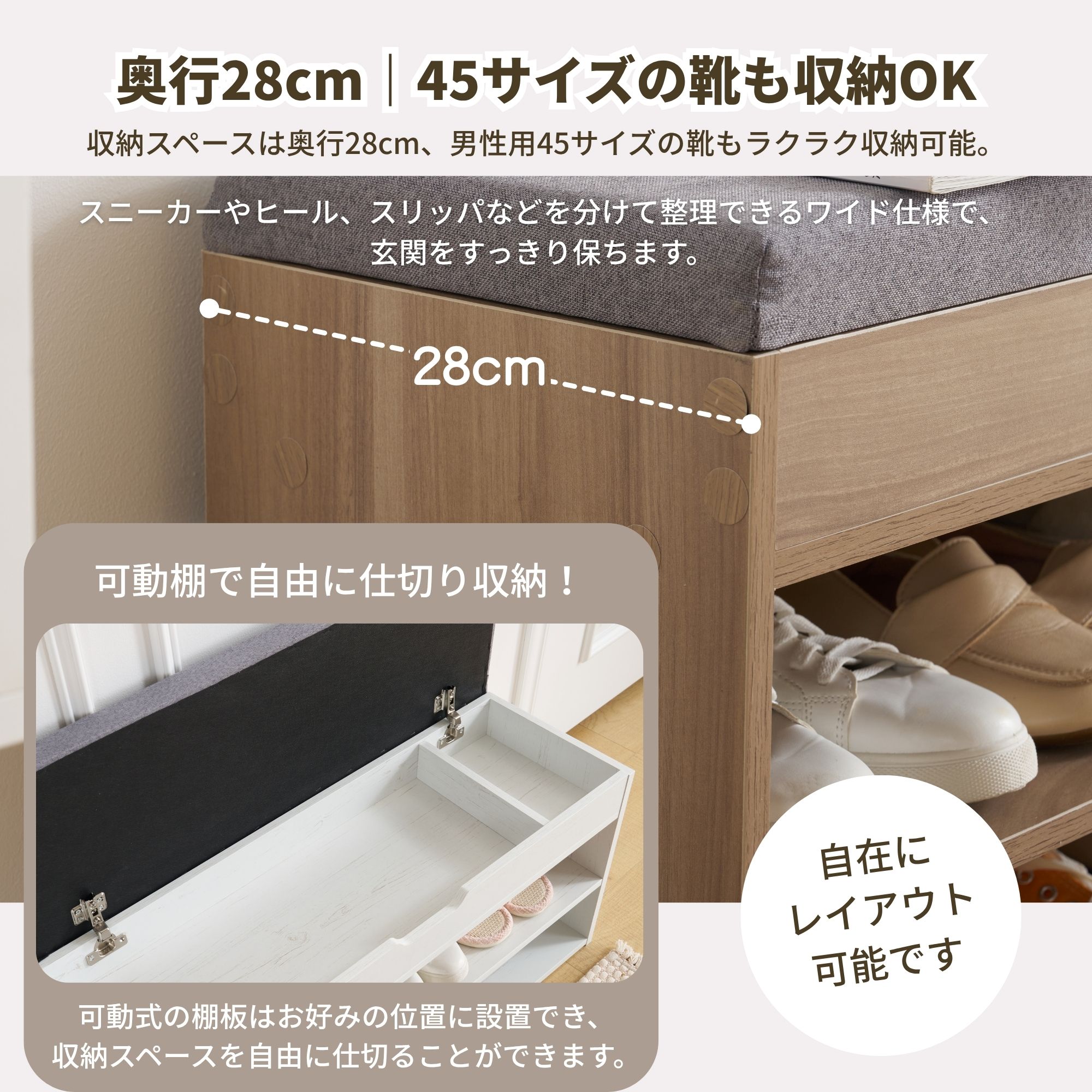 ダイニングベンチ 玄関ベンチ シューズラック 玄関椅子 玄関収納 収納ベンチ 下駄箱 靴箱 収納 小物収納 靴収納 省スペース 靴棚 スツール 収納ボックス付き 耐荷重150KG 椅 靴入れ