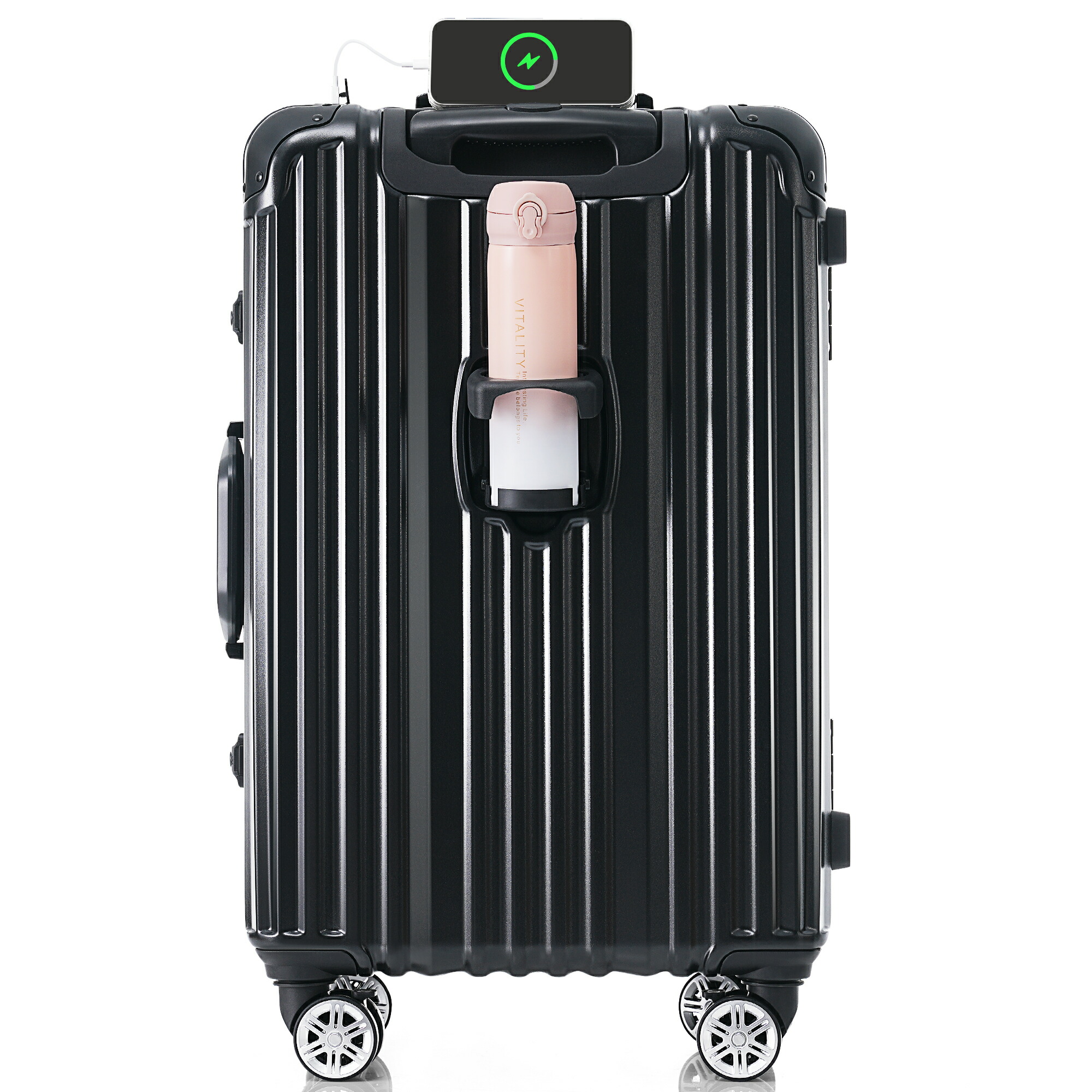 スーツケース S M Lサイズ 機内持ち込み ストッパー付き USBポート カップホルダー キャリーケース キャリーバッグ 小 中 大型 2日~14日
