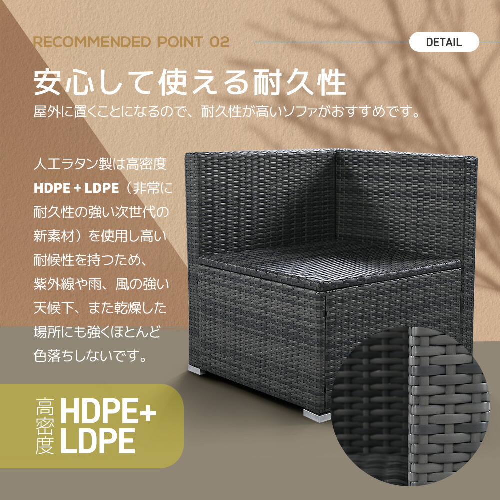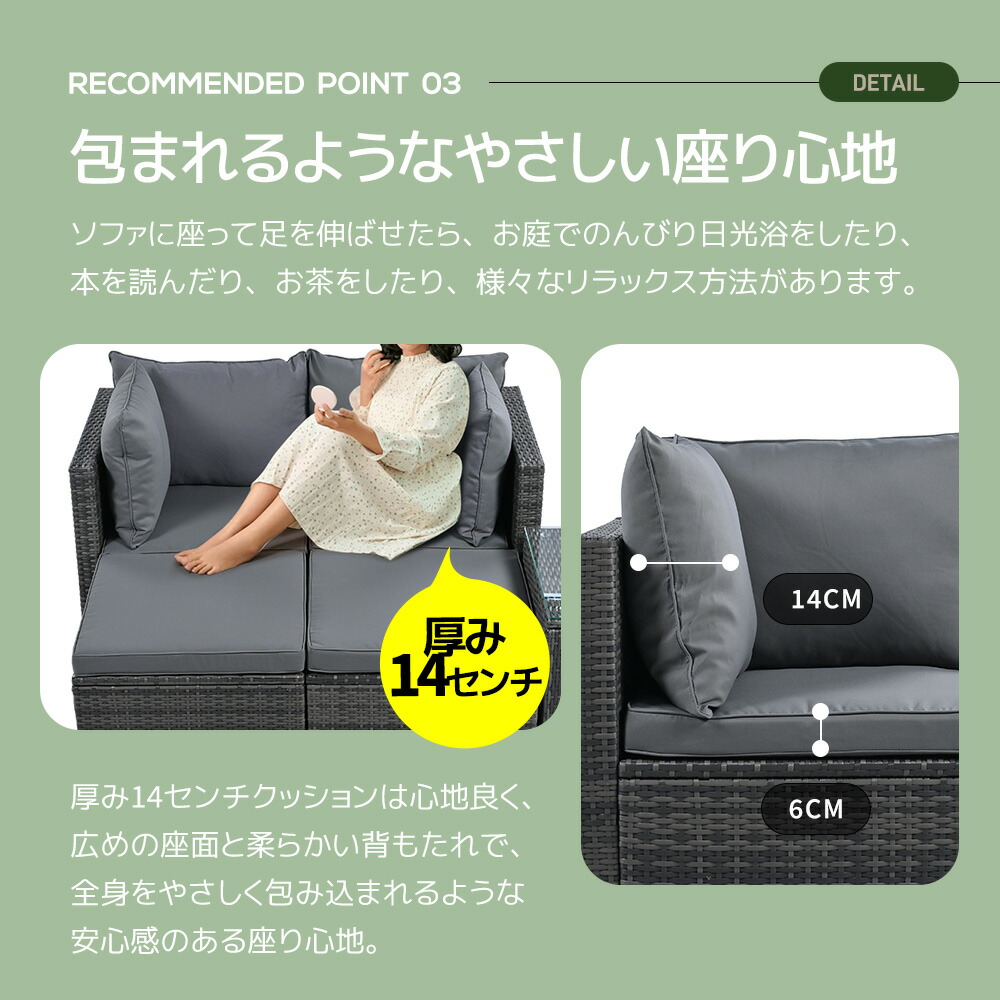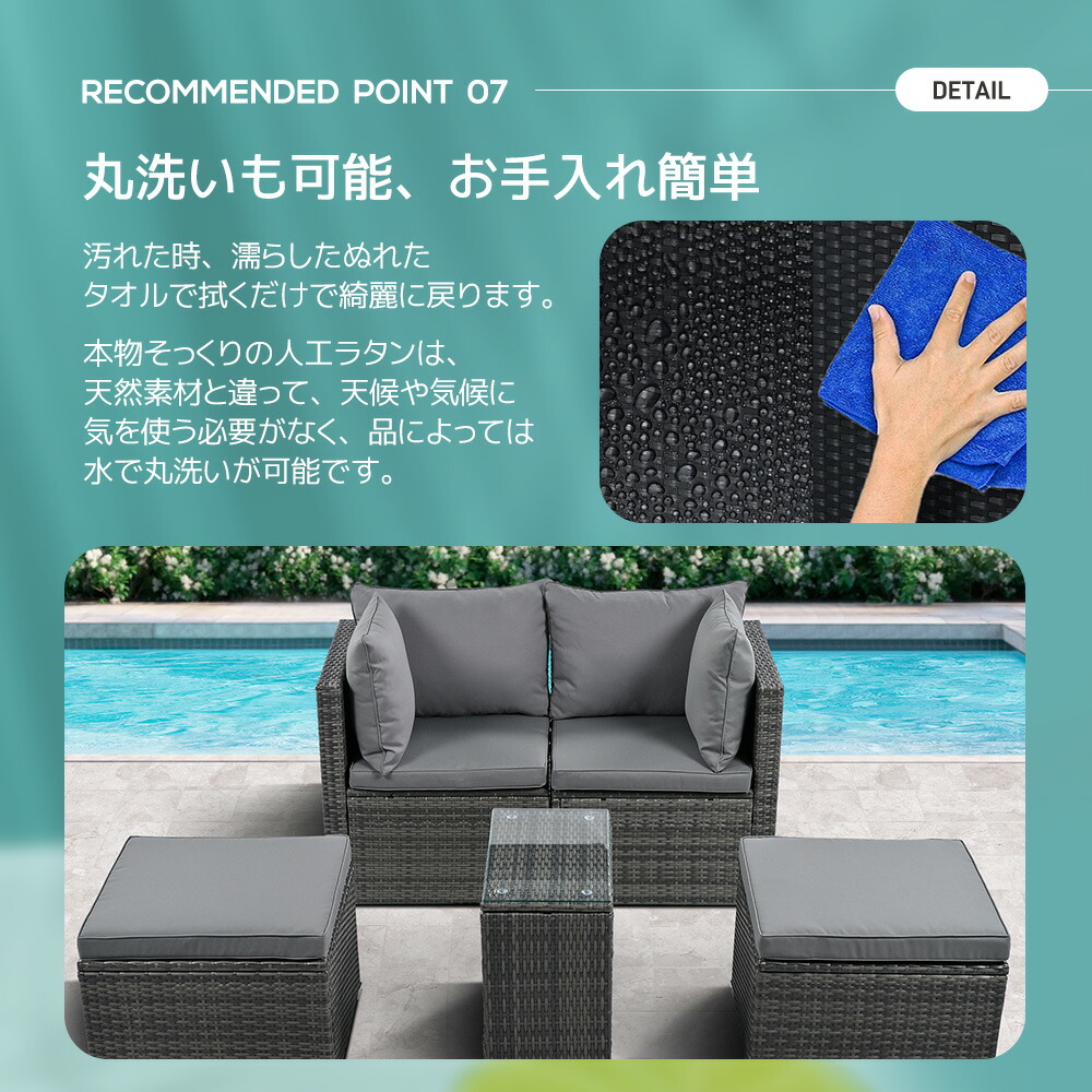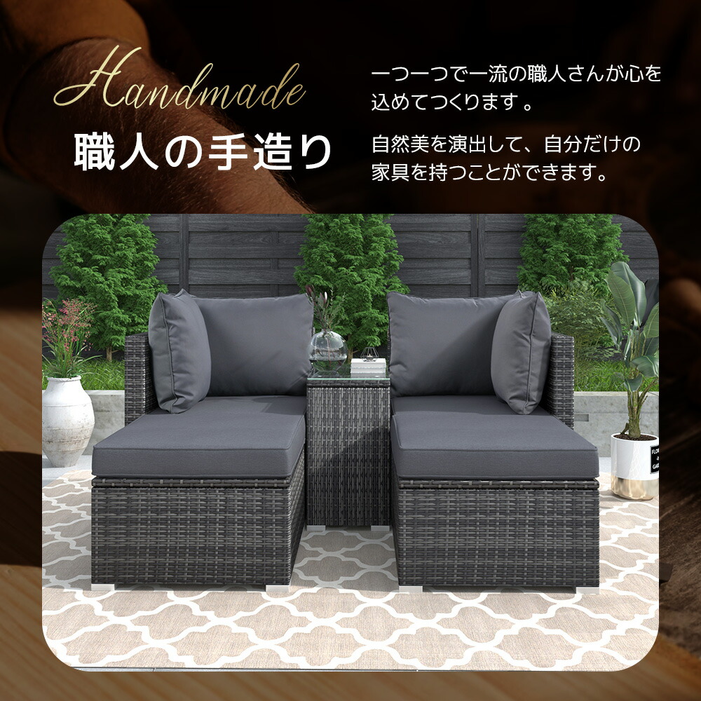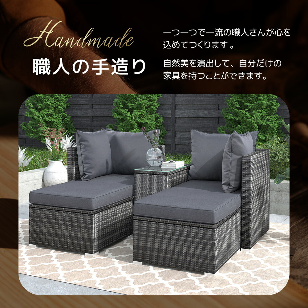ラタン調 ガーデンファニチャー 5点 ブラック グレー