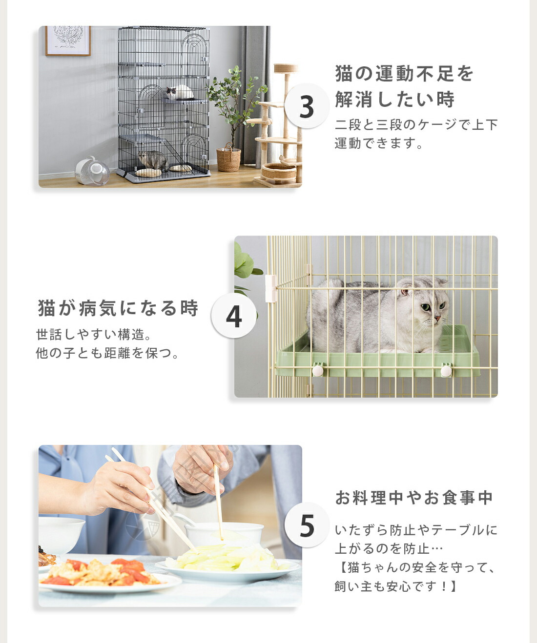 猫 ケージ キャットケージ 3段 M Lサイズ 留守番 保護 脱走防止 多頭飼い 多頭 猫ゲージ おしゃれ キャットハウス ネコ 多段 スチール ペットケージ ハウス