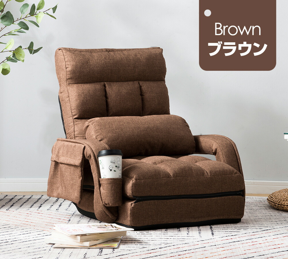 座椅子 肘掛け サイドポケット付き ハ ホワイト ブラウン ダークグレー ライトグレー ブルーグレー コーヒー