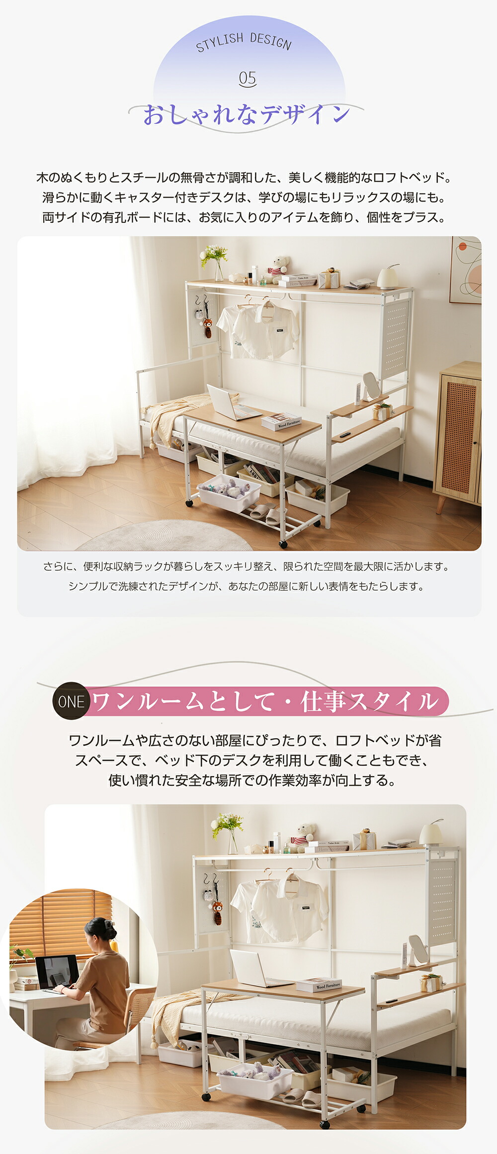 2025年新作 システムベット ロフトベッド シングル スチールネット付き 移動型デスク付き コンセント付き 収納棚付き 北欧風 木目 子供ベッド 大人ベッド 一人暮らし 耐震 ベッド ホワ スチール