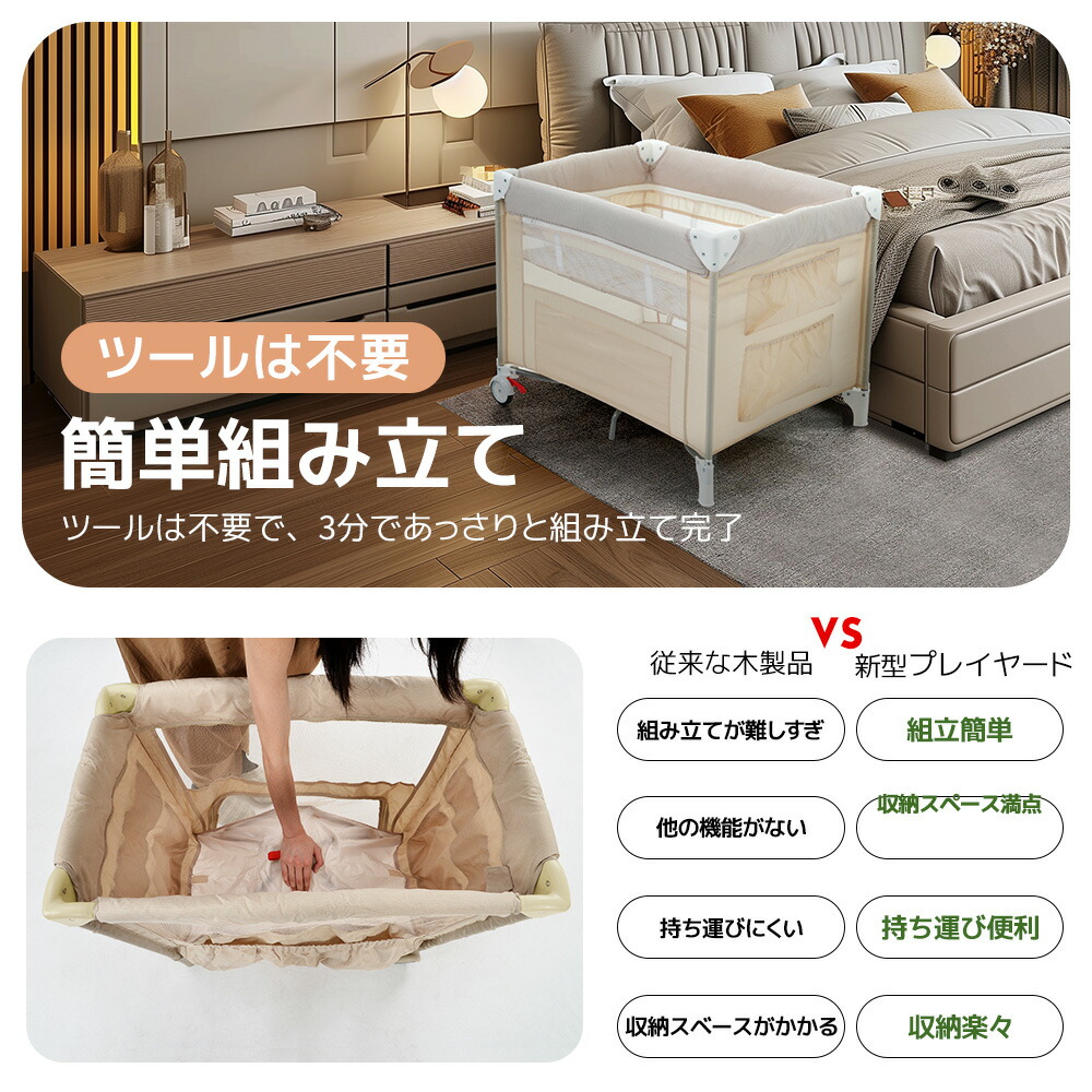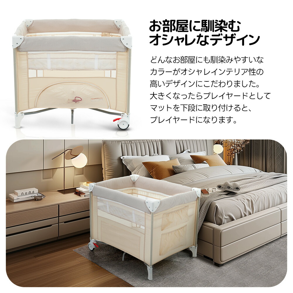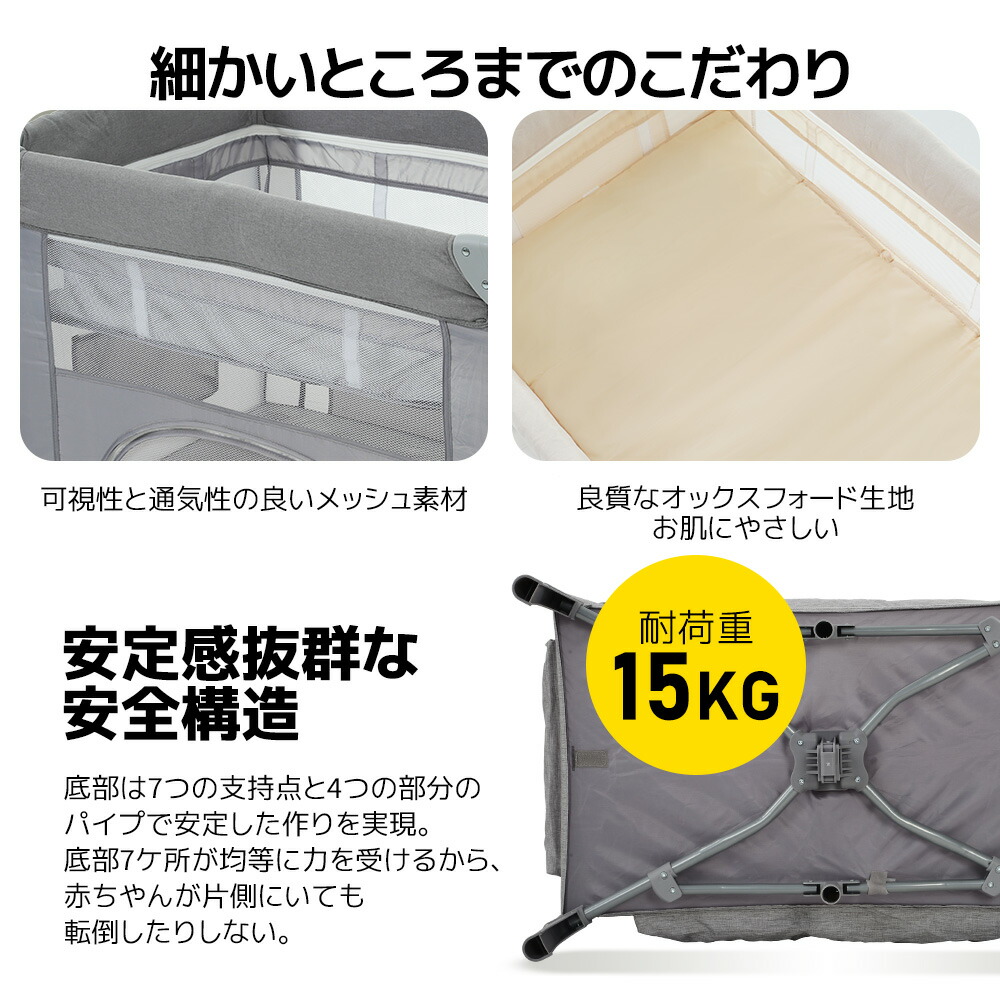 折りたたみ ベビーサークル お昼寝マッ ベージュ グレー