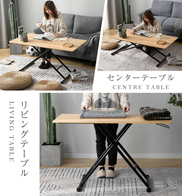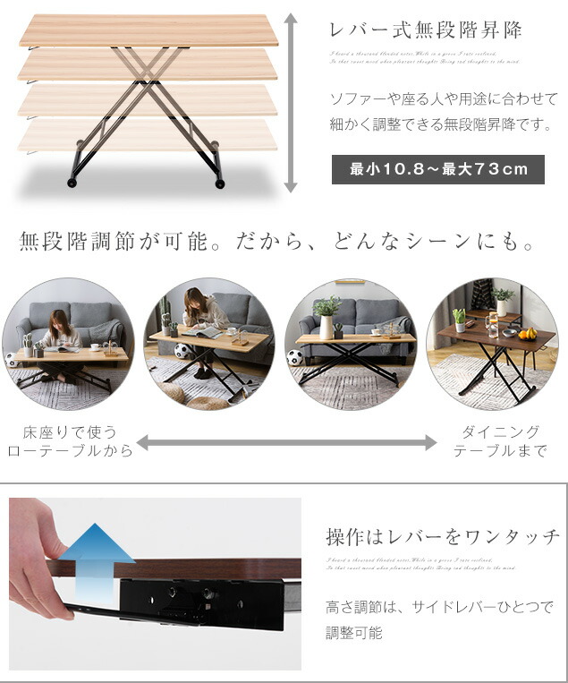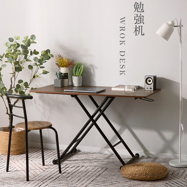 テーブル ガス圧昇降式テーブル 無段階 クルミ ナチュラル ホワイト