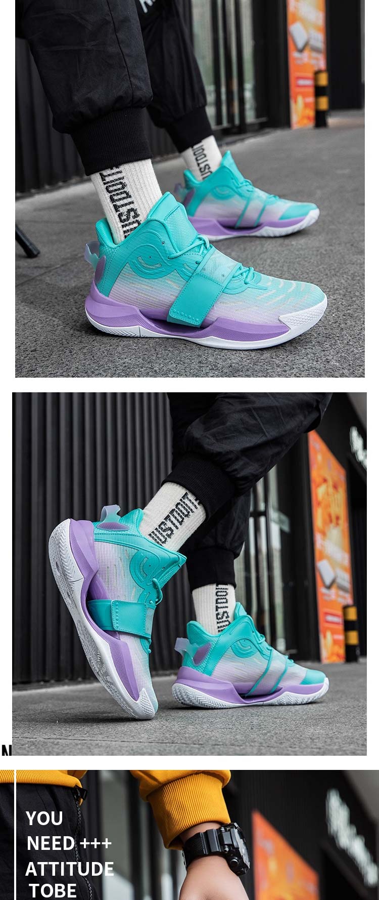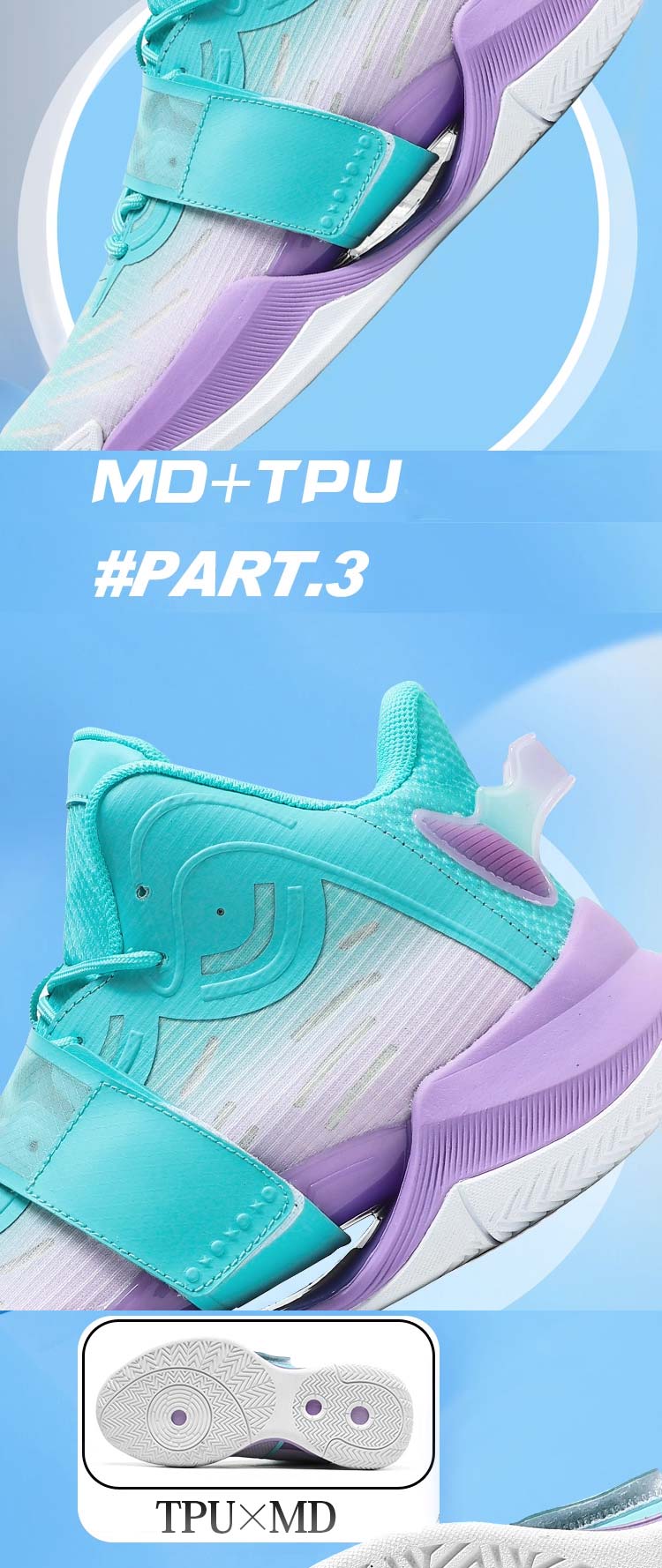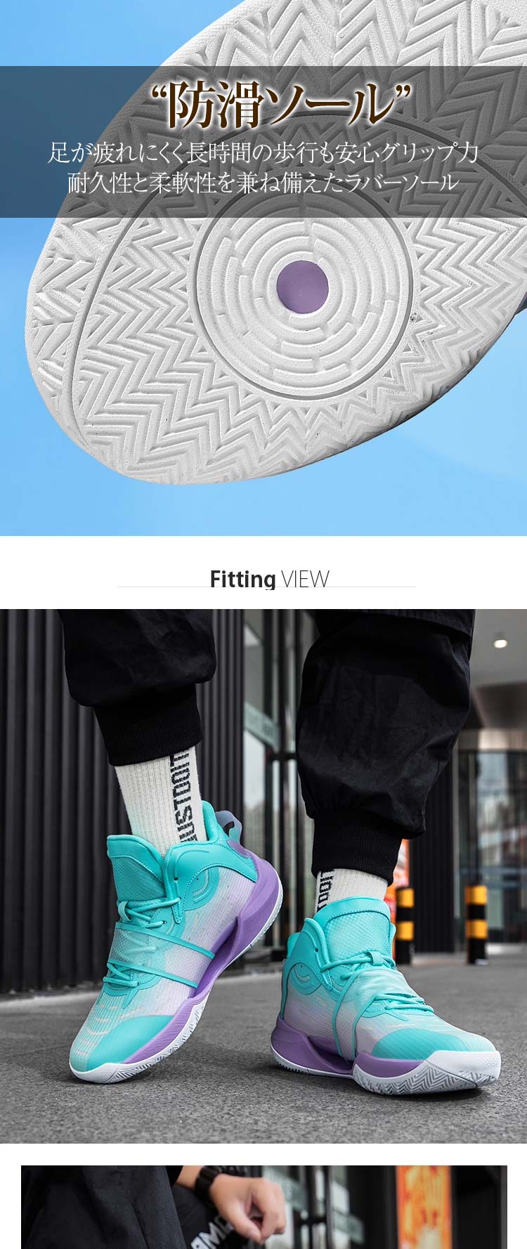 靴底は優れた耐摩耗性と滑りにくい素材を採用、バスケットボールコートでの試合に勝つのに役立ちます。