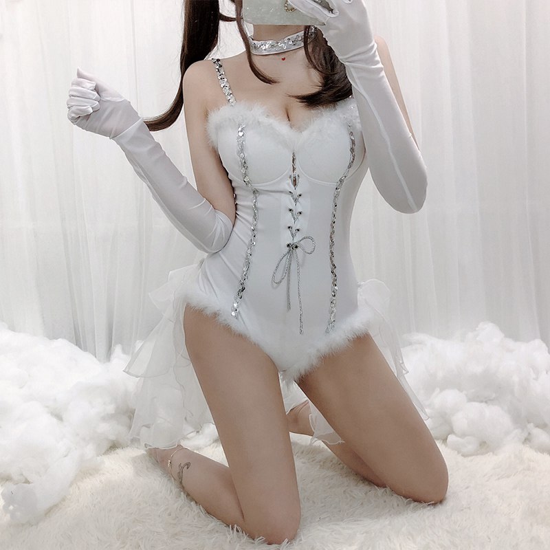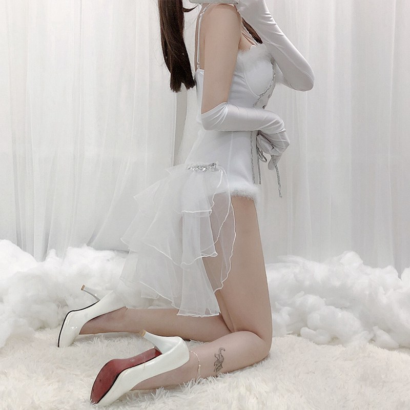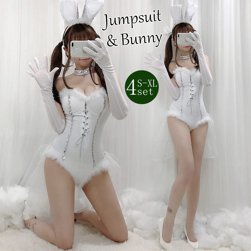 バニーガール クリスマス カチューシャ付き4点SETバニーガール コスチューム うさ耳 ネコ耳 コスプレ衣装 ホワイト サンタコス クリスマス衣装