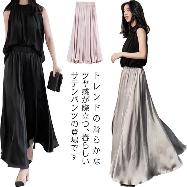 ワイドパンツ フェミニン 無地 お洒落 レディースファッション 続々登場 ホワイト ブラック ピンク グレー M L XL 2XL