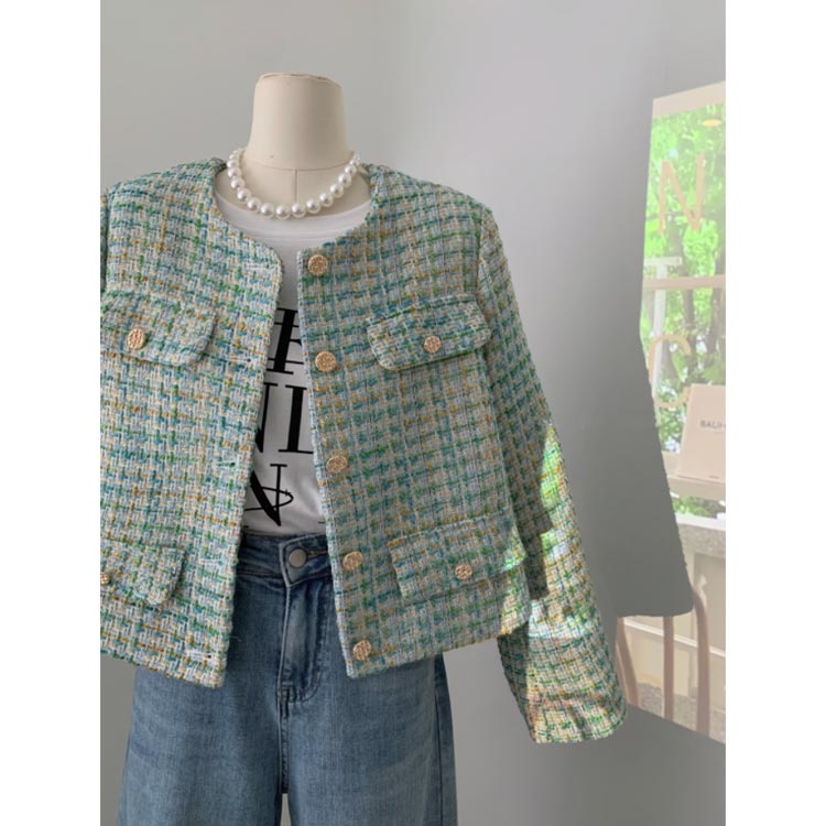 ツイードジャケット ノーカラー グリー コート ジャケット 早い者勝ち M L XL