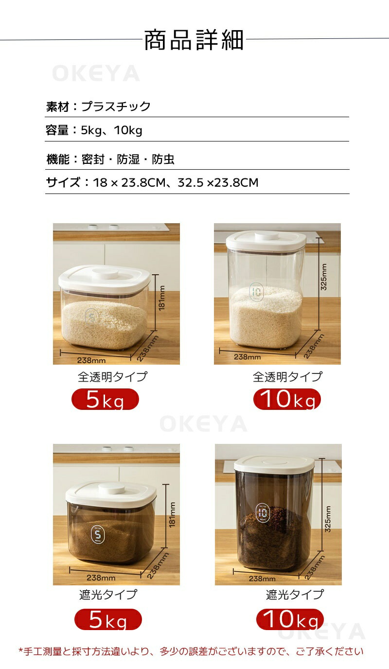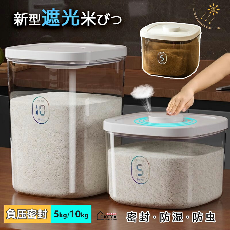 米びつ お米収納 遮光米びつ 米びつケ 保存容器 調味料入れ 保存容器 キャニスター 超目玉商品 全透明 茶色(遮光タイプ) 5kg 10kg