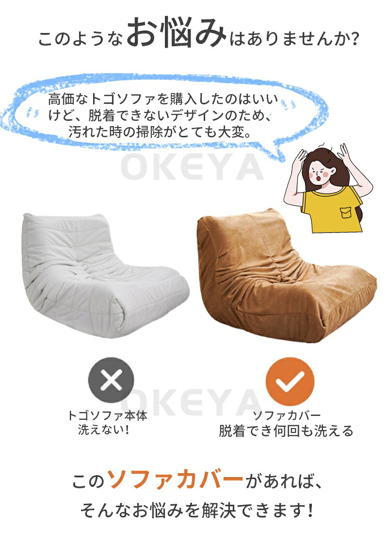 ソファーカバー TOGO オーダーメイ 1人掛け 2人掛け 3人掛け オットマン ライトグレー ダークグレー キャメル ピンク スカイブルー ダークグリーン ベージュ イエロー ブラック グリーン カラメル