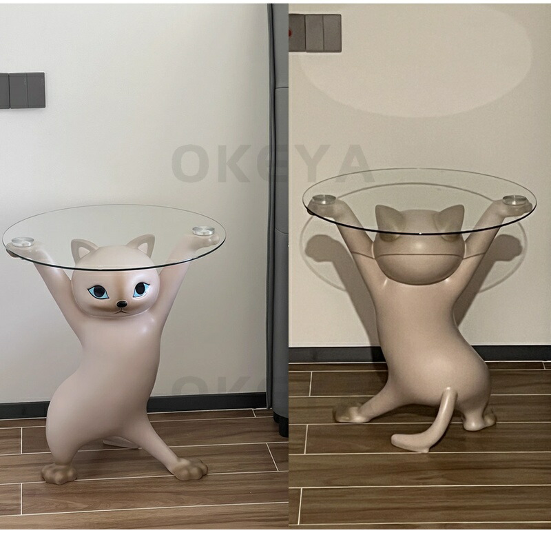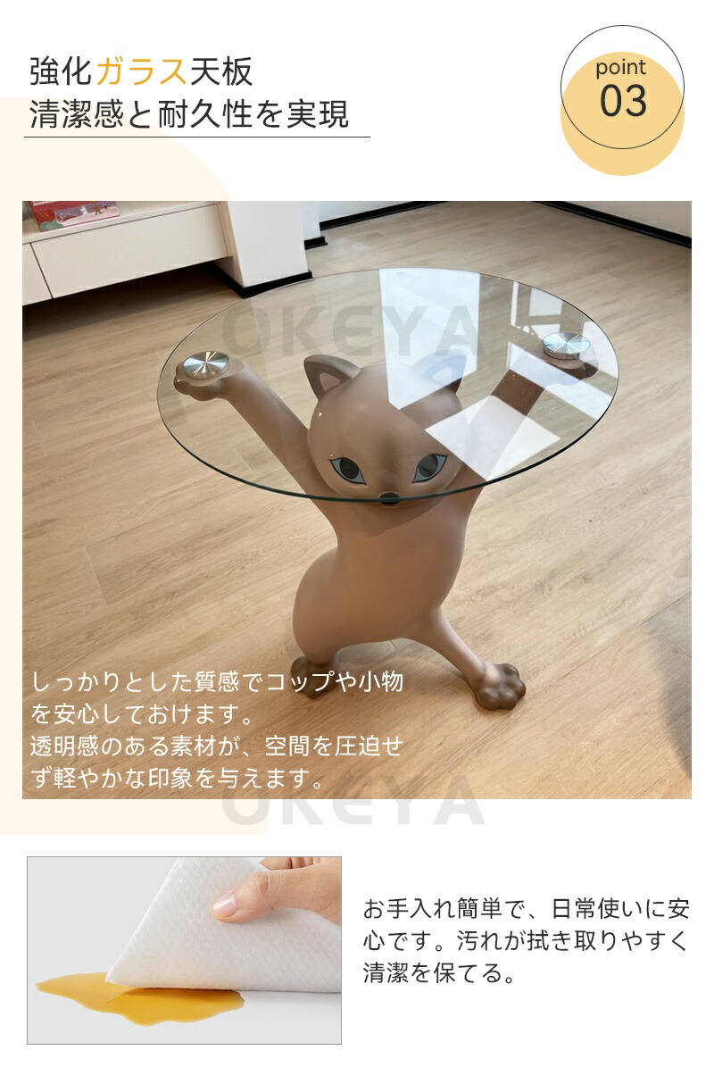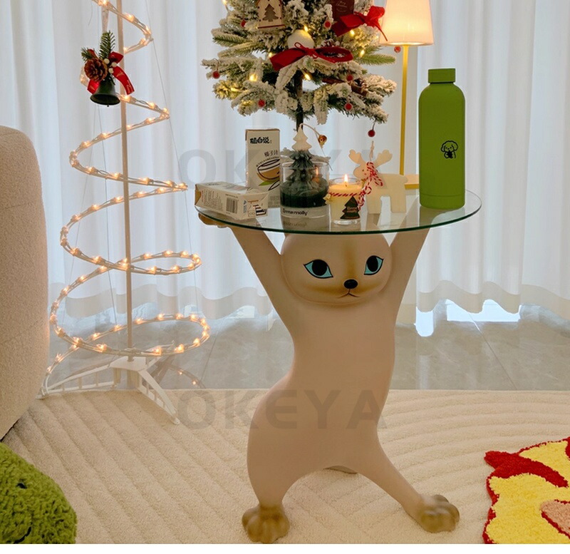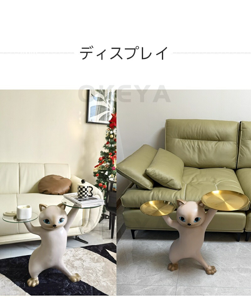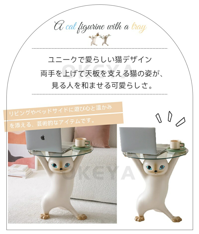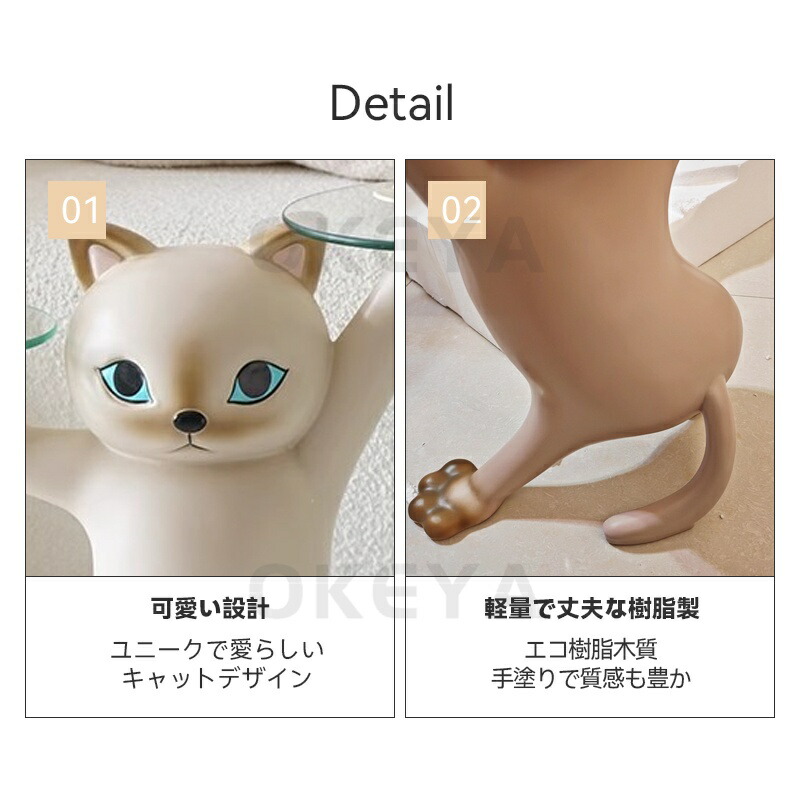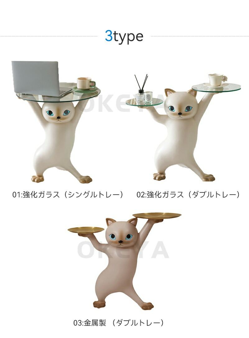 キャットサイドテーブル 猫デザイン 強 強化ガラス (シングルトレ一) 強化ガラス(ダブルトレ一) 金属製(ダブルトレ一)