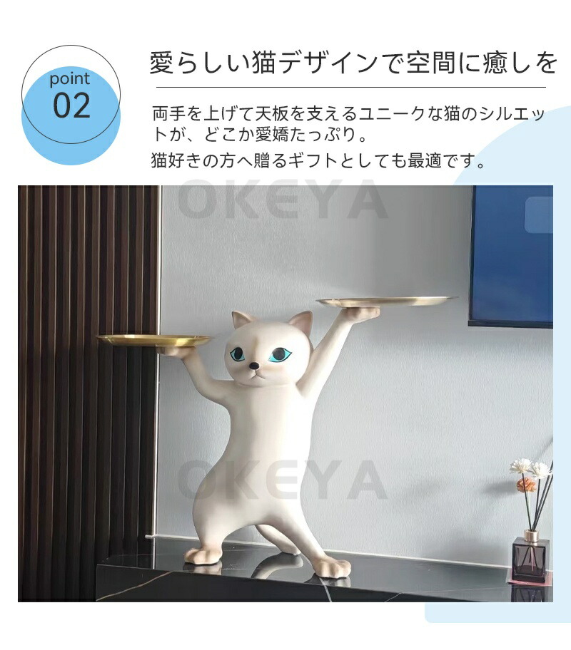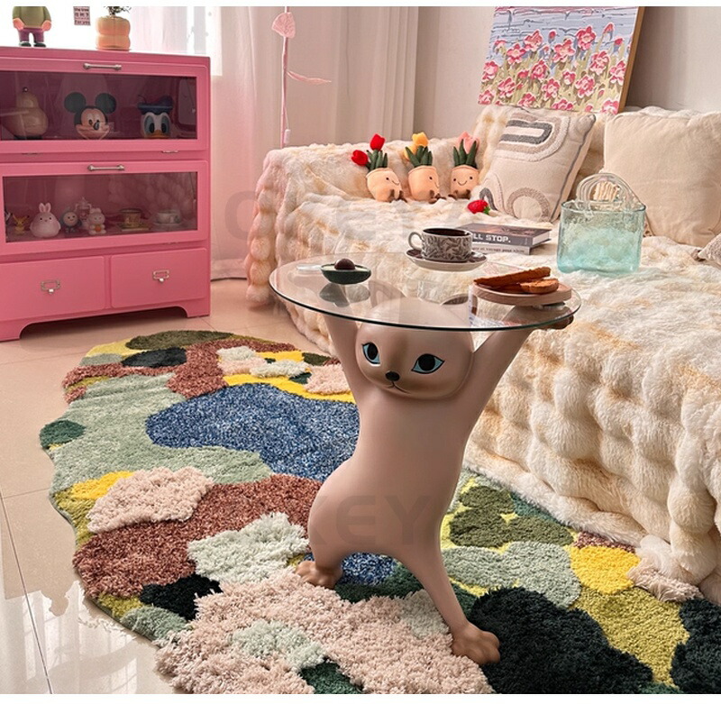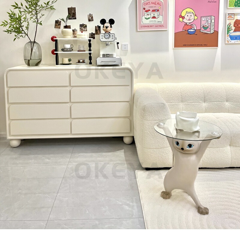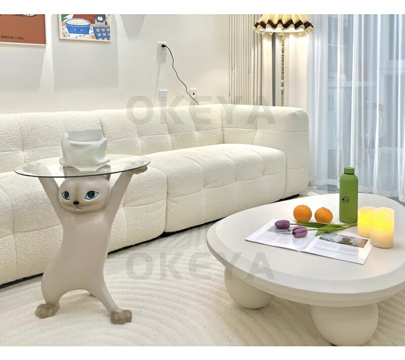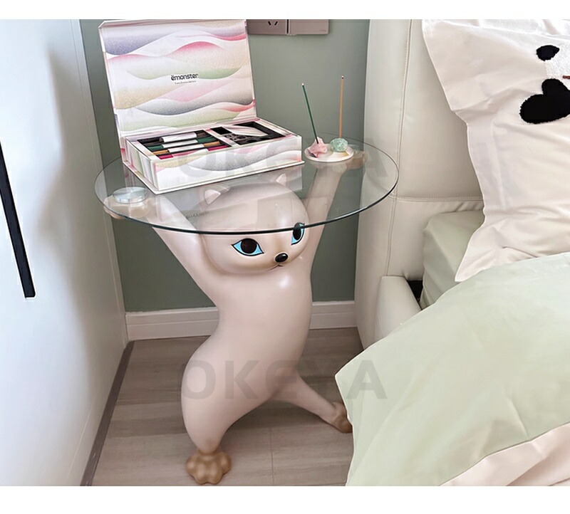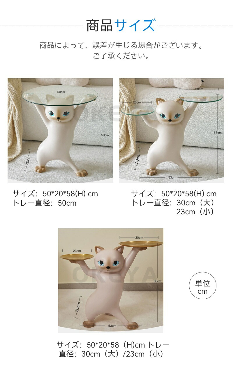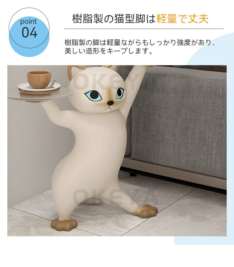 キャットサイドテーブル 猫デザイン 強 強化ガラス (シングルトレ一) 強化ガラス(ダブルトレ一) 金属製(ダブルトレ一)