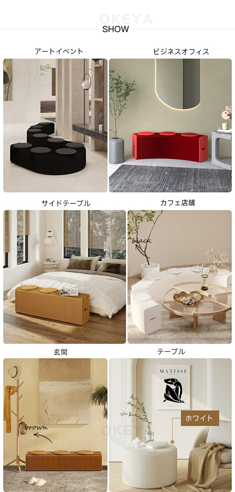 アコーディオン椅子 ロングスツール 伸 ブラック ホワイト レッド ブラウン ホワイト&ブラウン 30cm 44cm